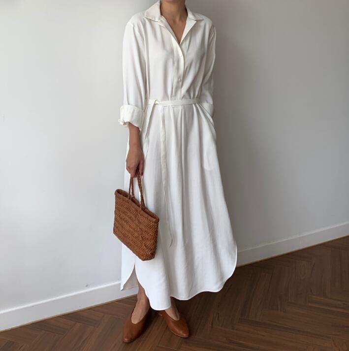 上品なシャツデザインが魅力的なロングワンピースです。