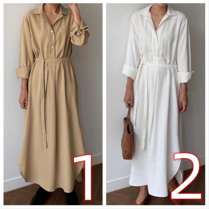 ベージュとホワイトの二色から選べる、着回し力抜群のシャツワンピースです。