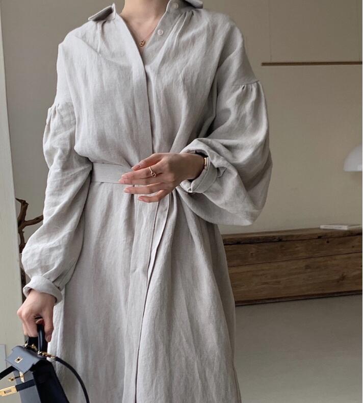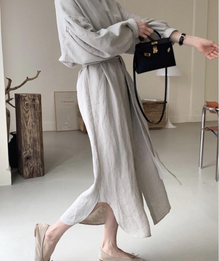 ゆったりとしたシルエットにウエストベルトでメリハリをプラス。