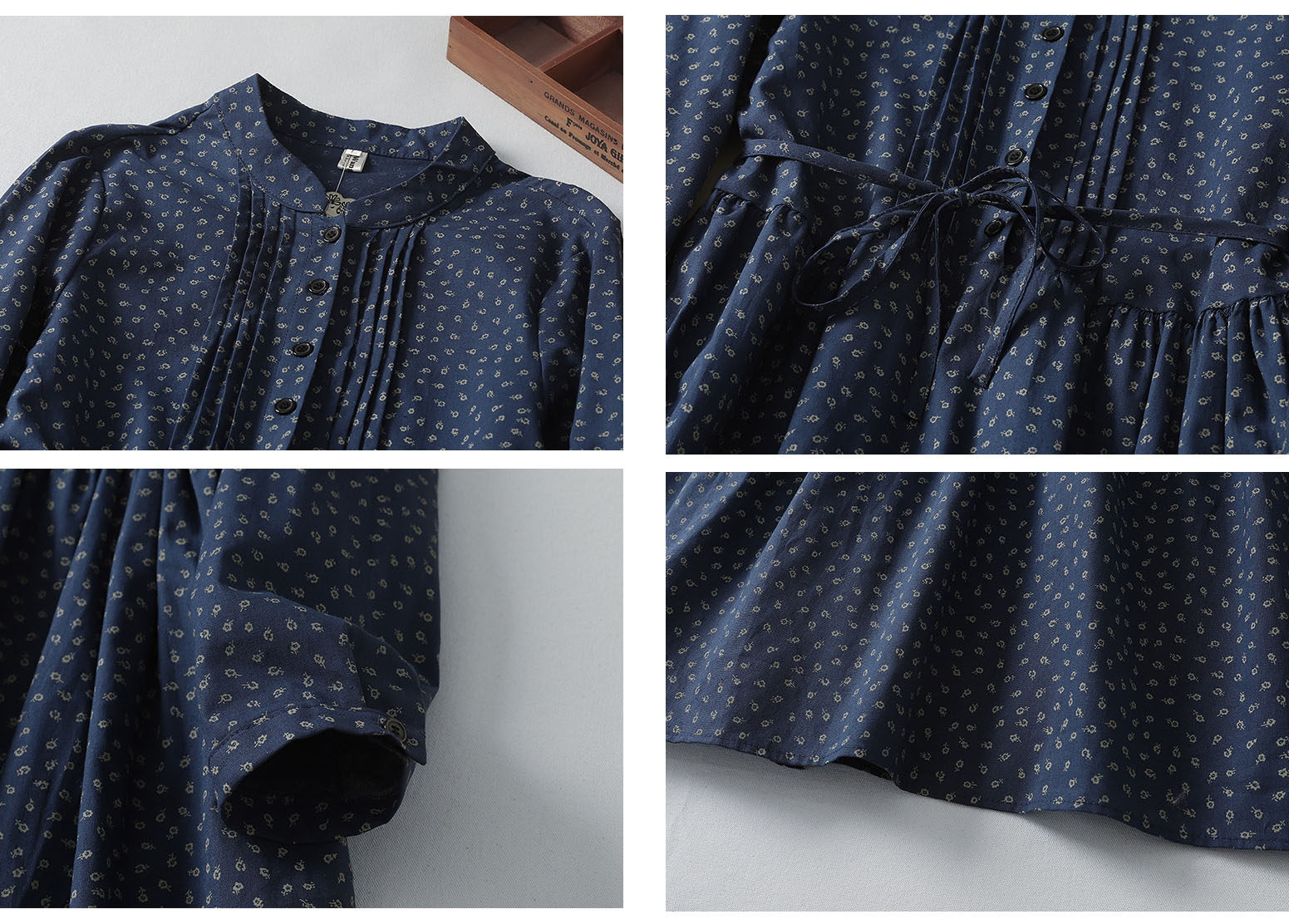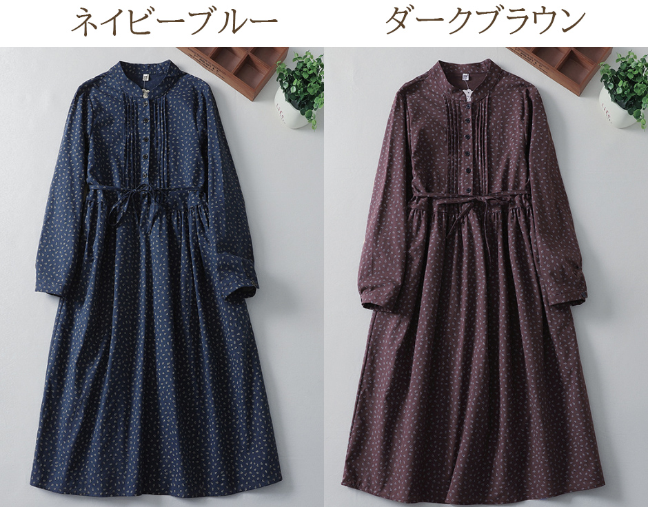 小花柄が上品な印象を与え、ゆったりとしたシルエットで体型カバーも完璧。