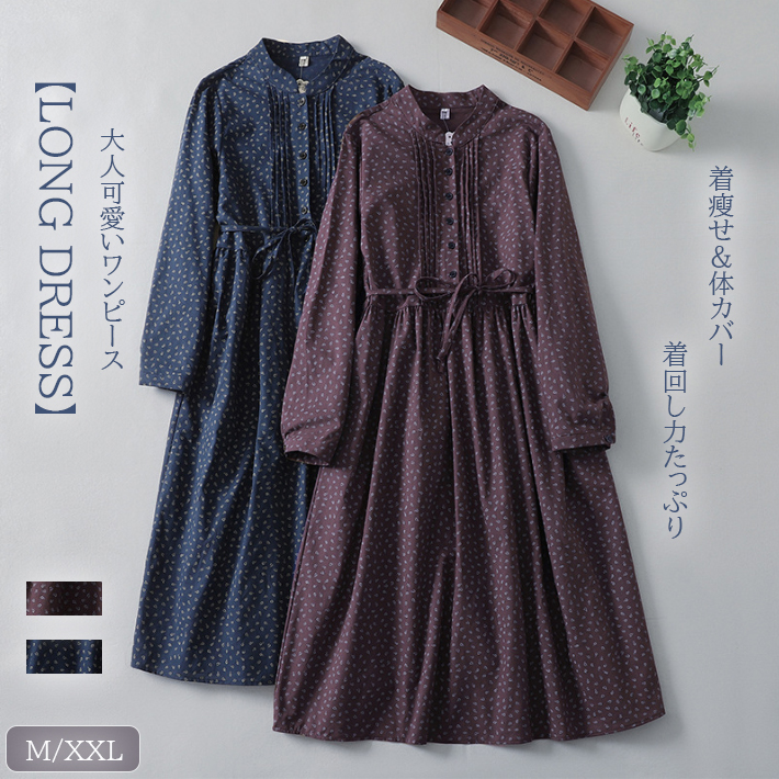■コメント ・大人可愛いロングワンピース 。 ・首元は体のラインに沿うラウンドネックですっきり見える ・ウエストまわりをすっきり見せてくれる紐付き ・体のラインを拾わないゆったりとしたデザイン。 ■サイズ(単位:約cm) M(普通) 肩幅39 バスト98 着丈110 袖丈57 袖口24 裾回り160(OK) XXL(大きめ) 肩幅42 バスト110 着丈113 袖丈58.5 袖口27 裾回り172 ■カラー 画像の色 ■伸縮性 なし ■裏地 なし ■生地の厚さ 普通 ■透け感 なし ■素材 ポリエステル100%