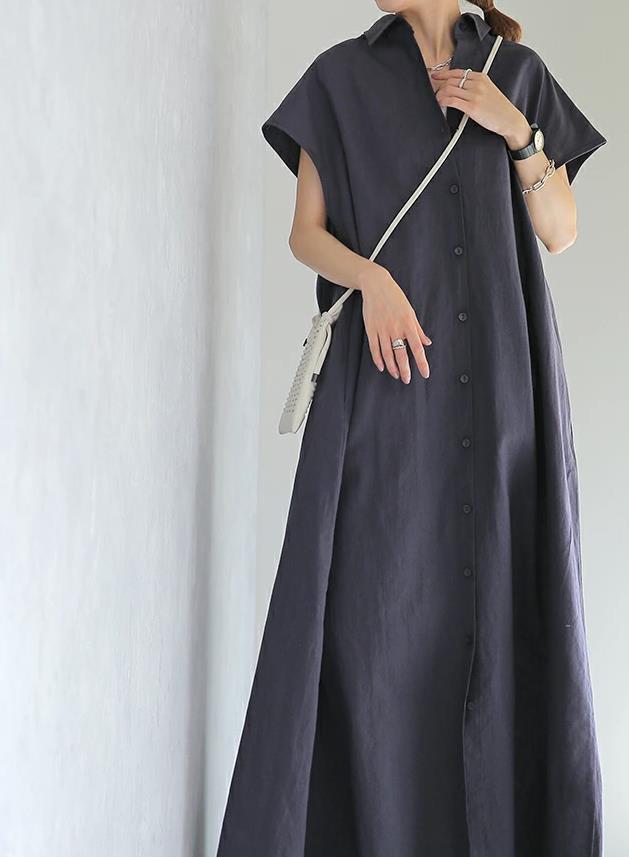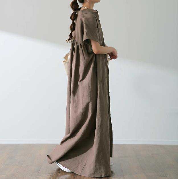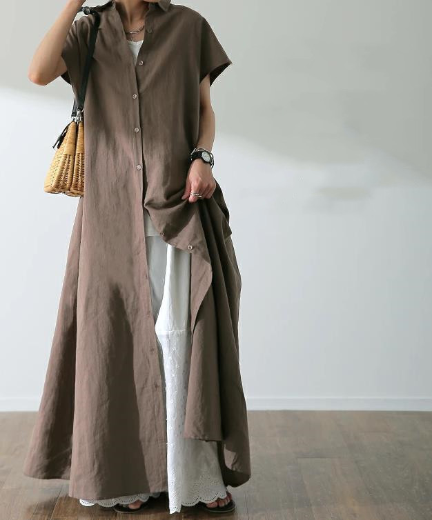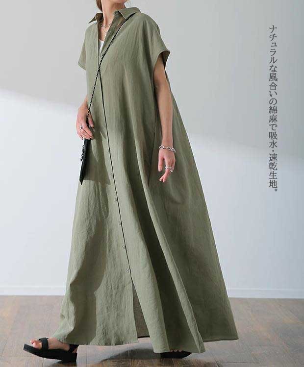 ナチュラルで上品な印象のシャツタイプのロングワンピース。