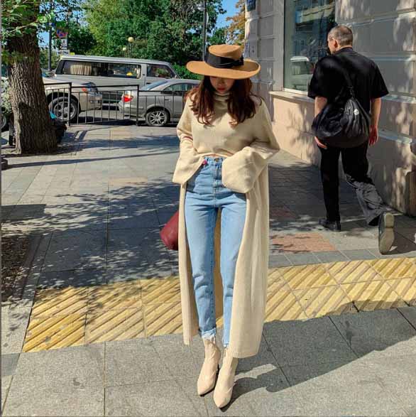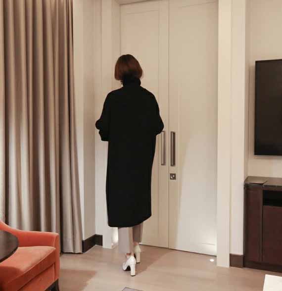 ロング丈でワンピースのように一枚で決まる優雅なシルエット。