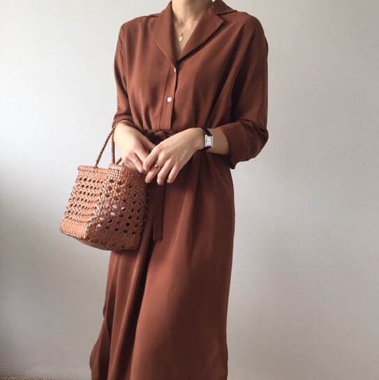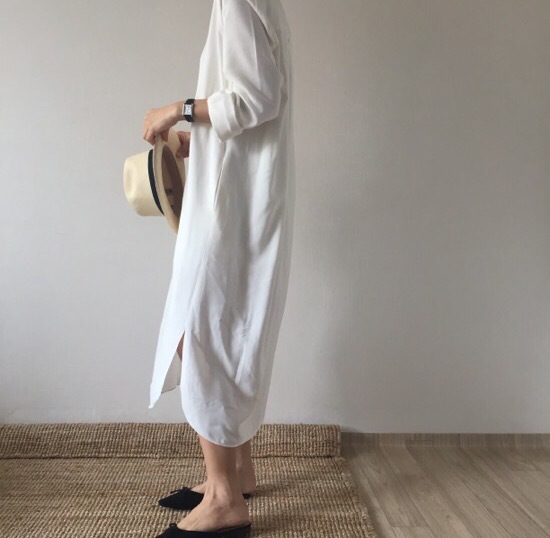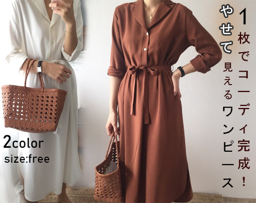 上品なシャツタイプのロングワンピースが登場。