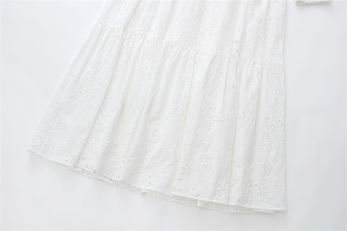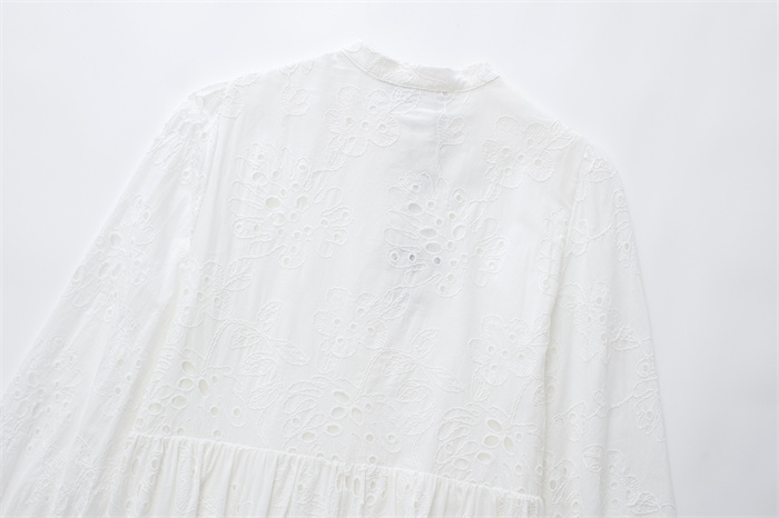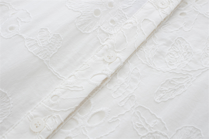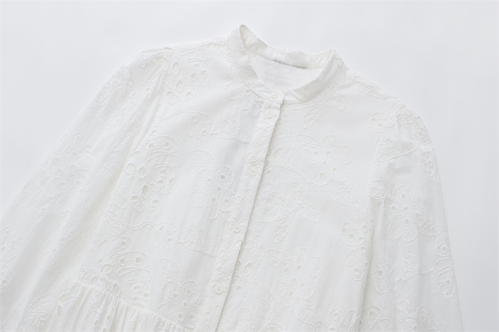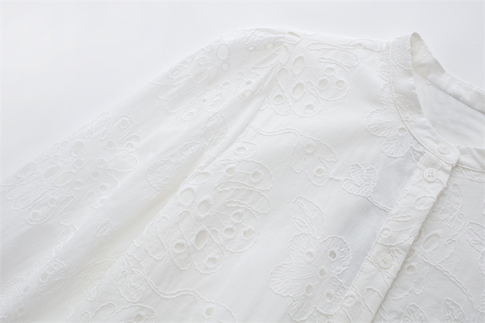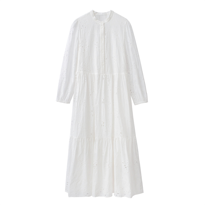 上品な透かし刺繍が美しいシャツタイプのロングワンピースです。