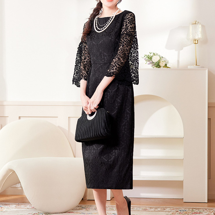 エレガントなレース袖が美しいロングワンピースが登場しました。