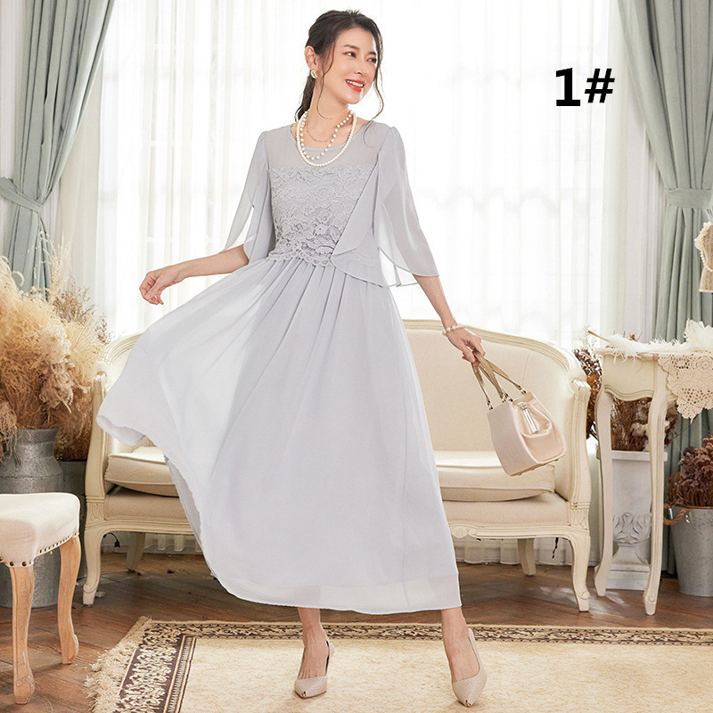 上品なレース装飾が美しいロングワンピースが登場しました。