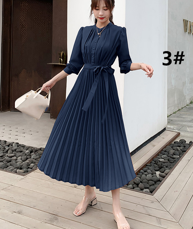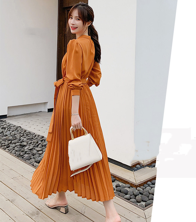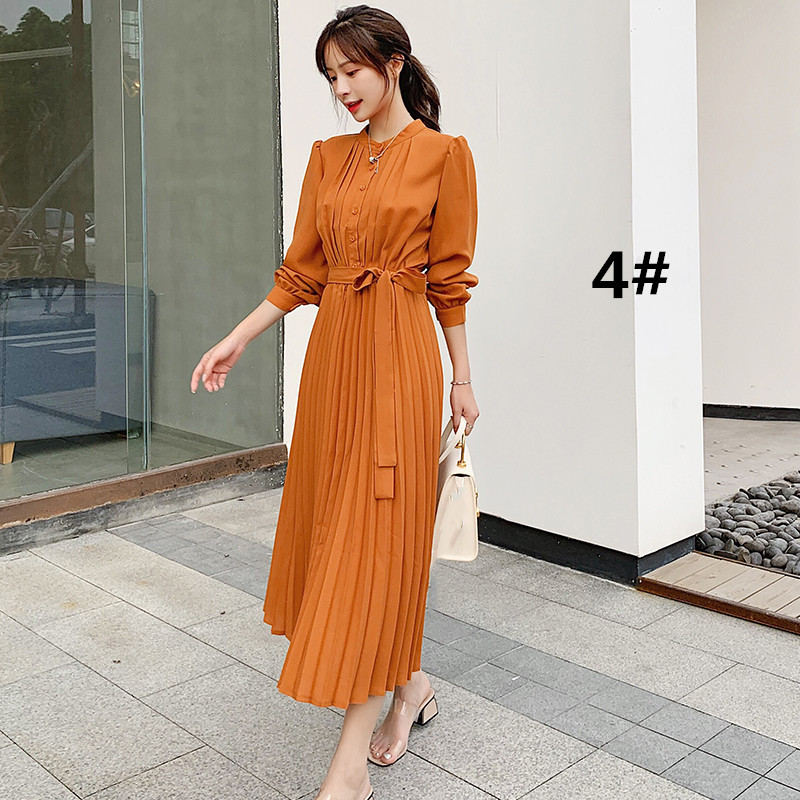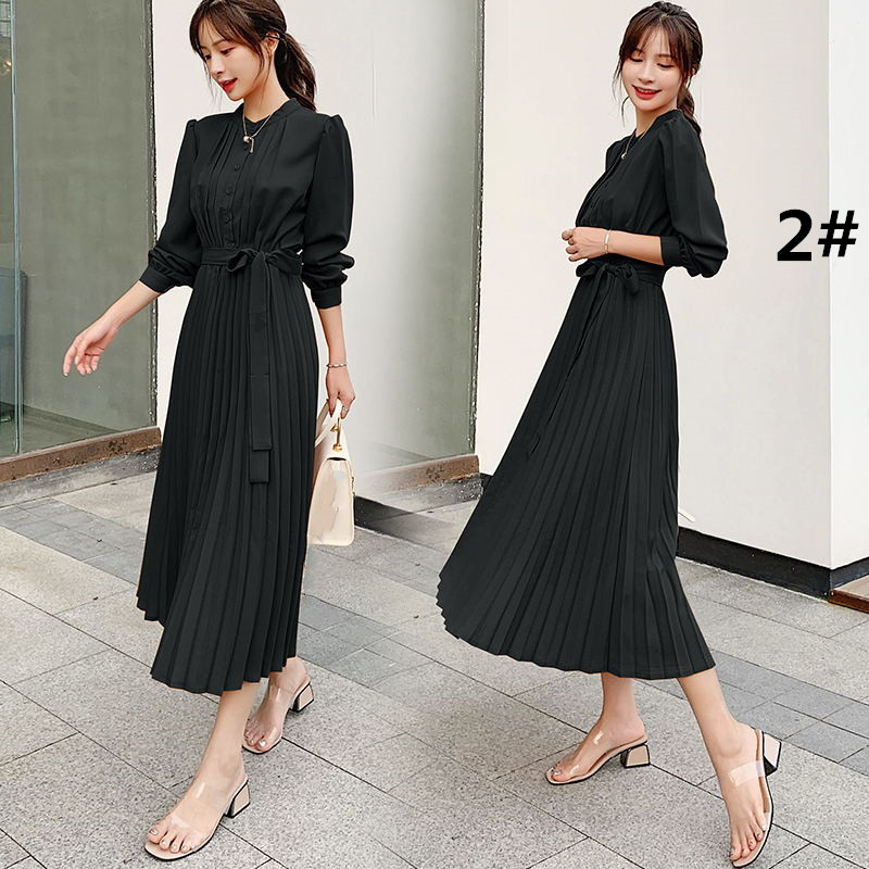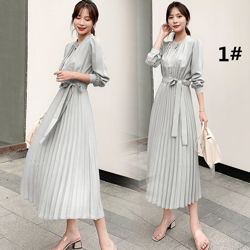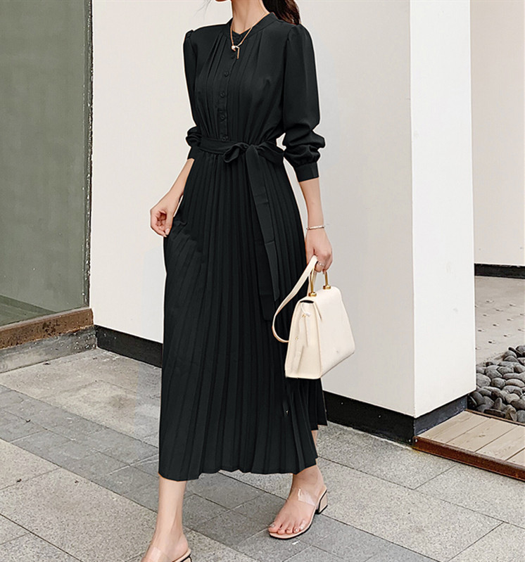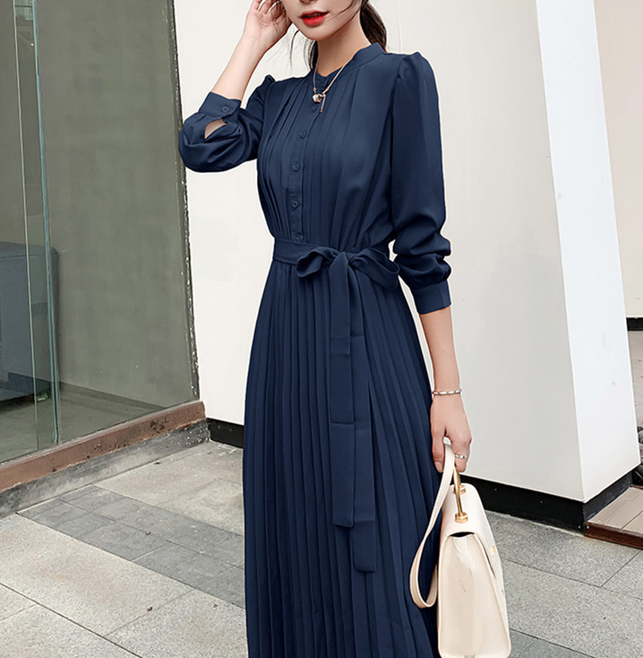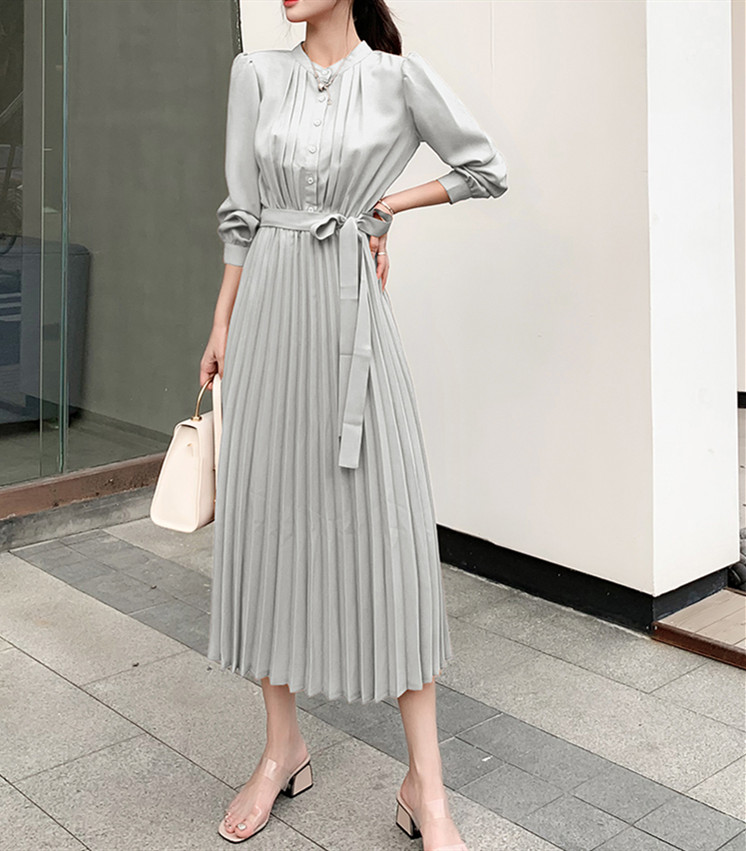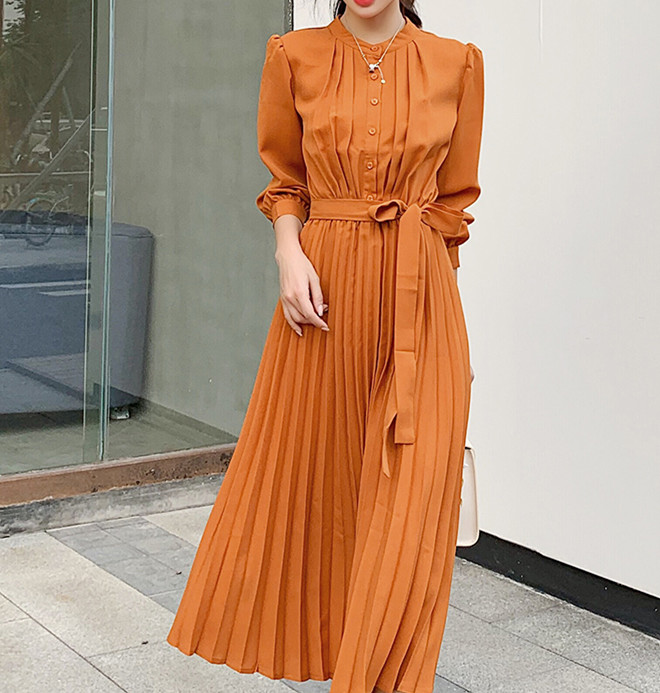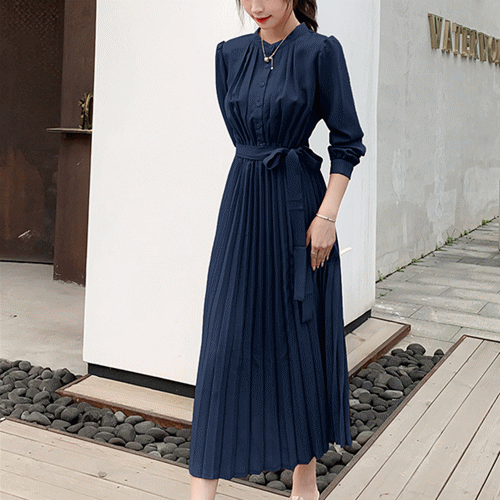 大人の魅力漂うシャツ風プリーツロングワンピース。