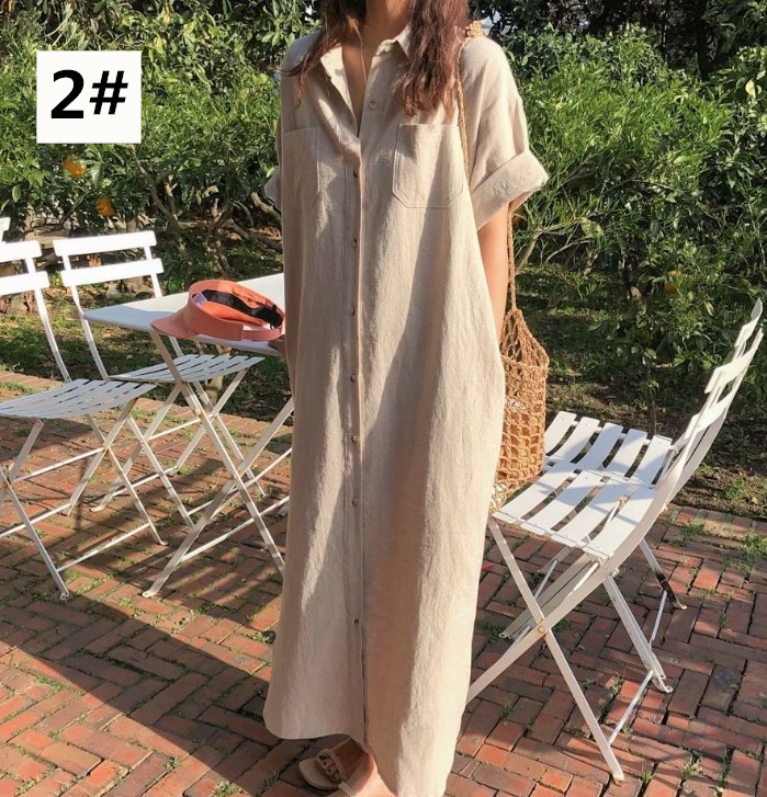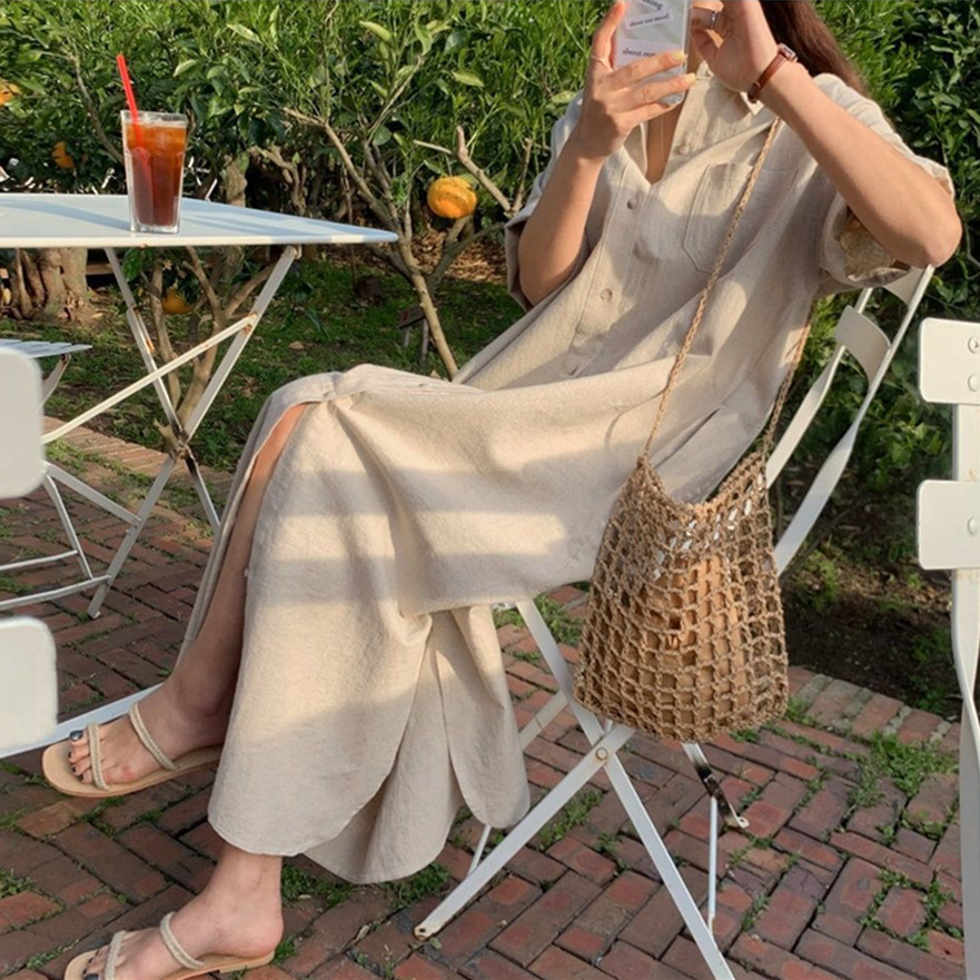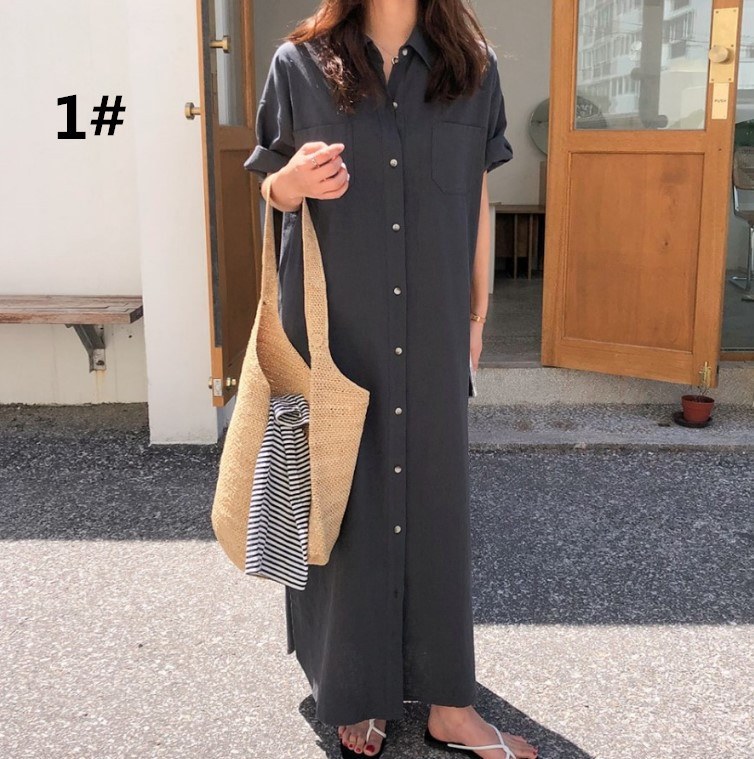 ゆったりとしたシルエットが魅力のロングシャツワンピース。