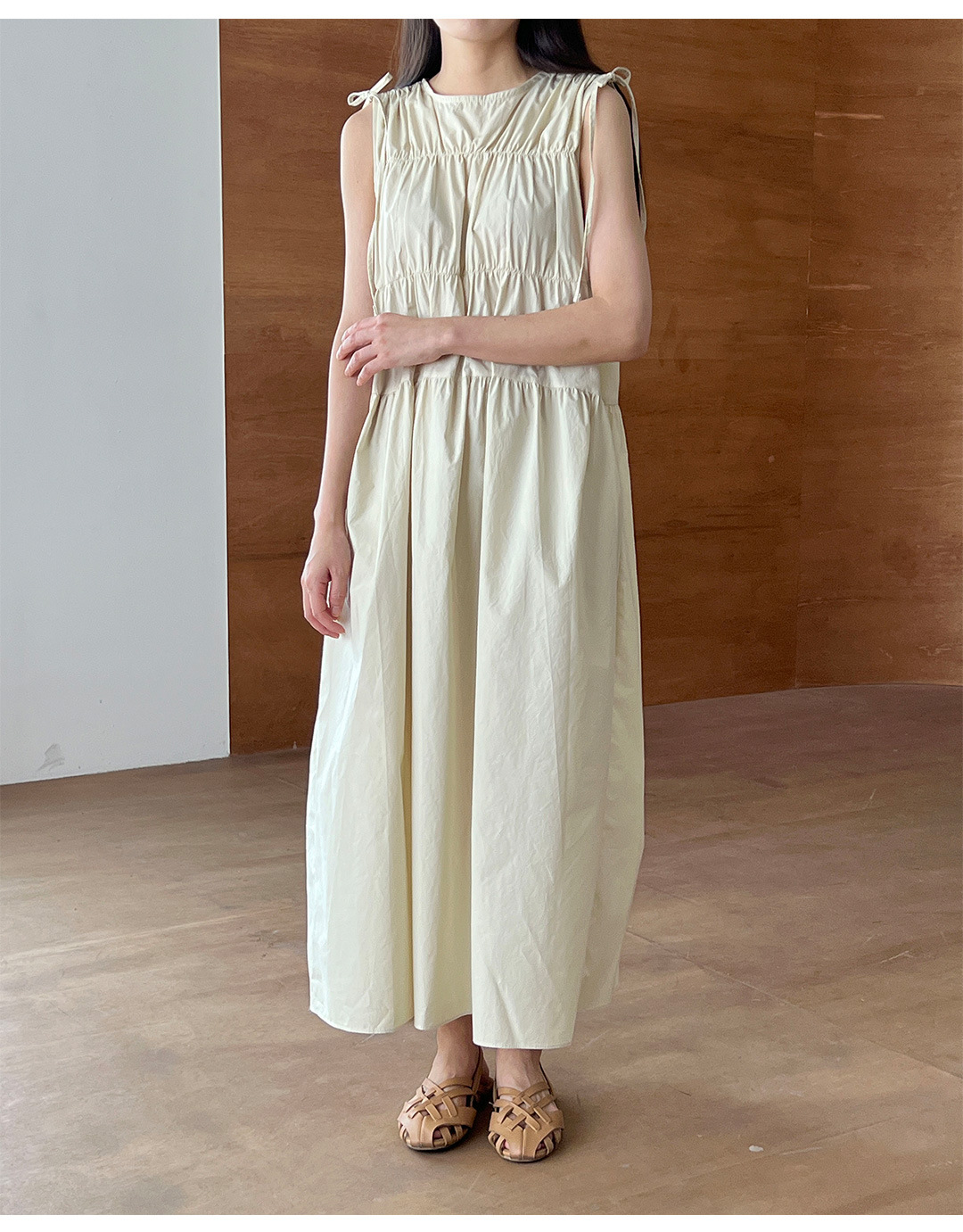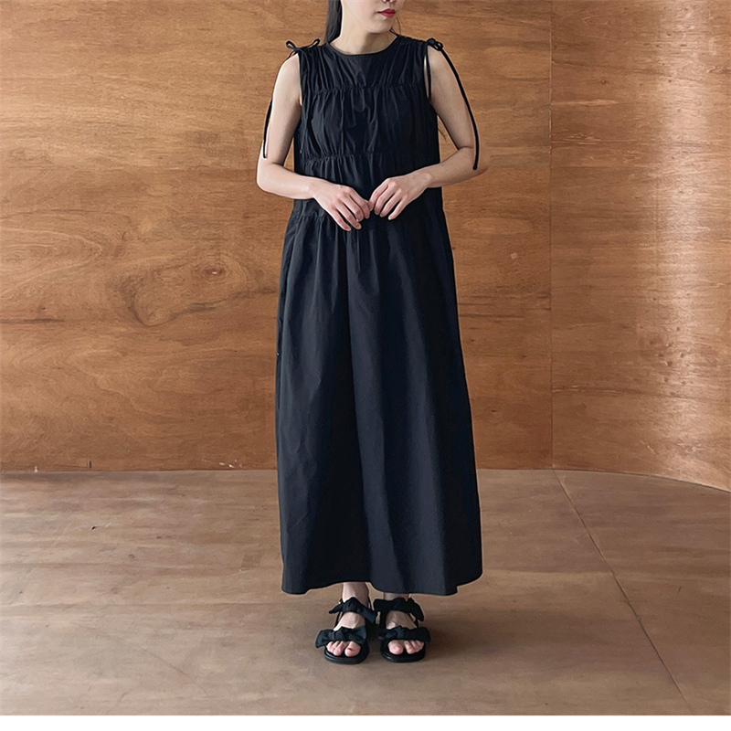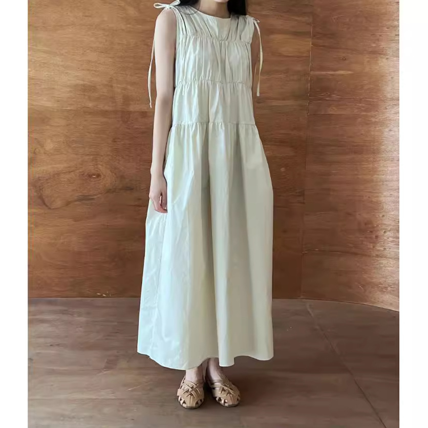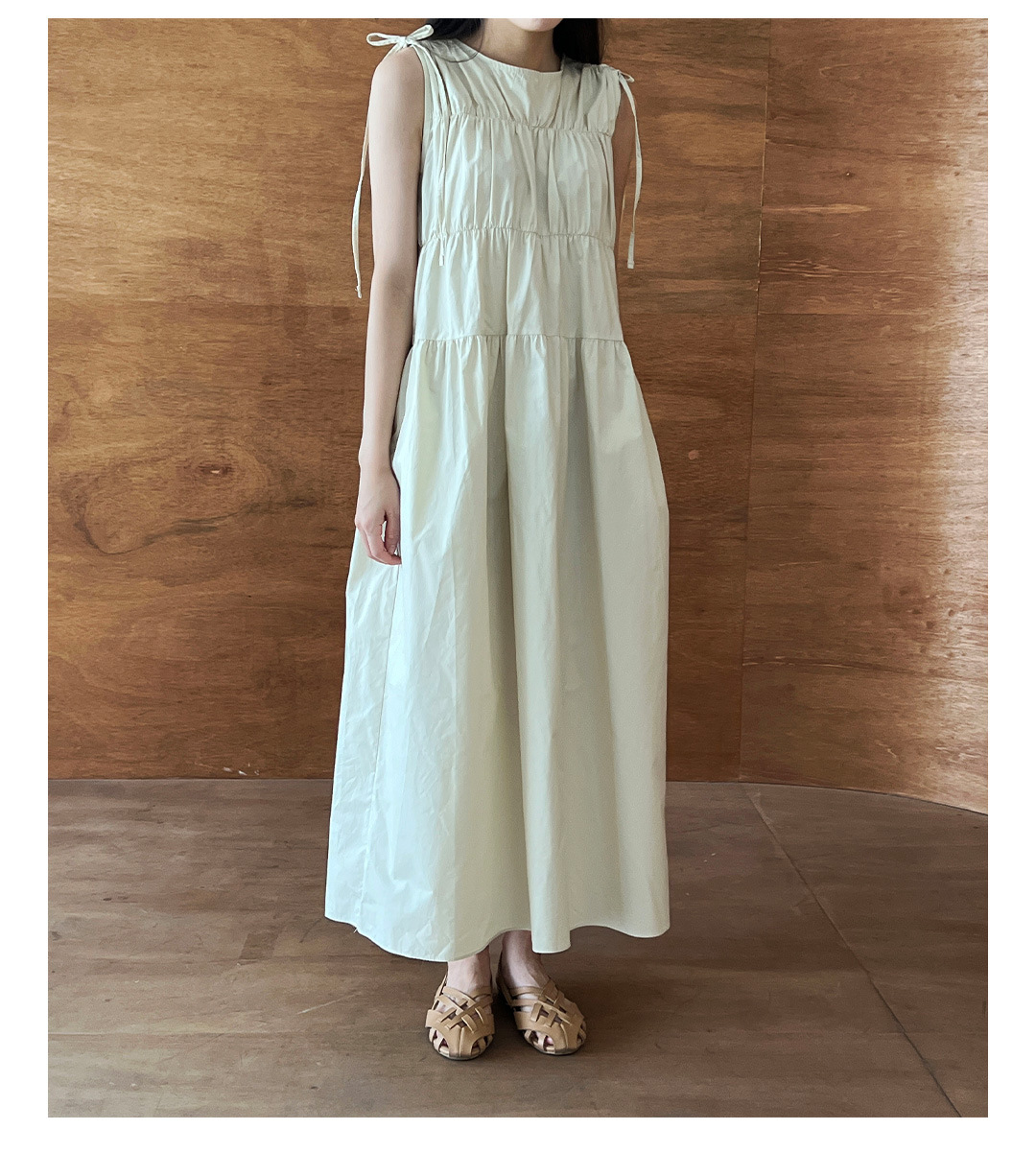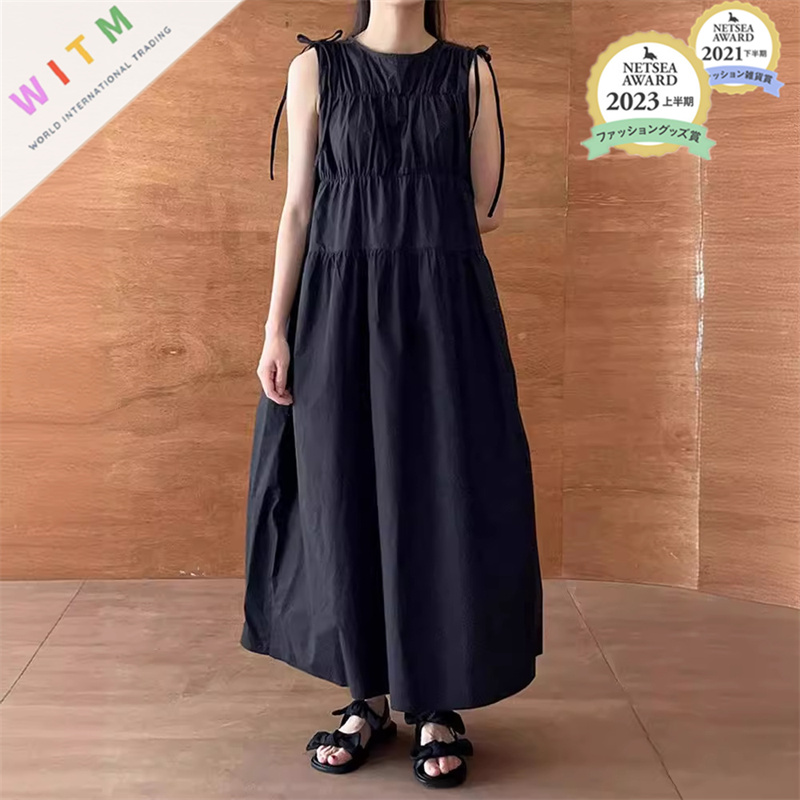 袖なしデザインで涼しく、ロングワンピースならではの上品なシルエットが魅力的。