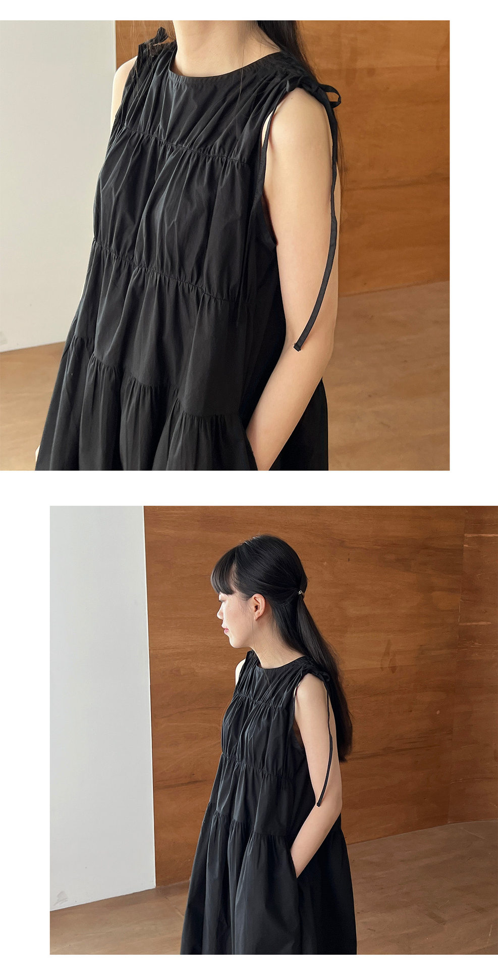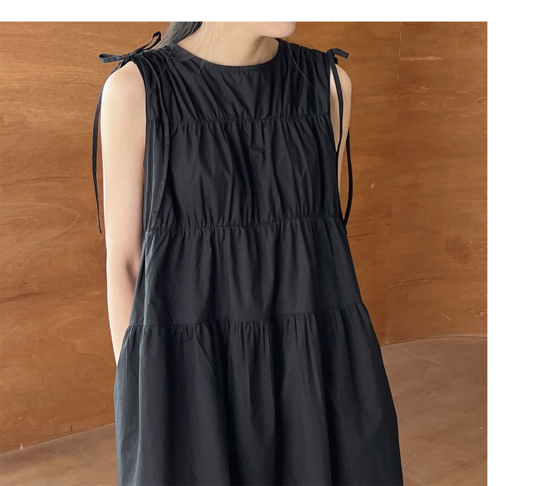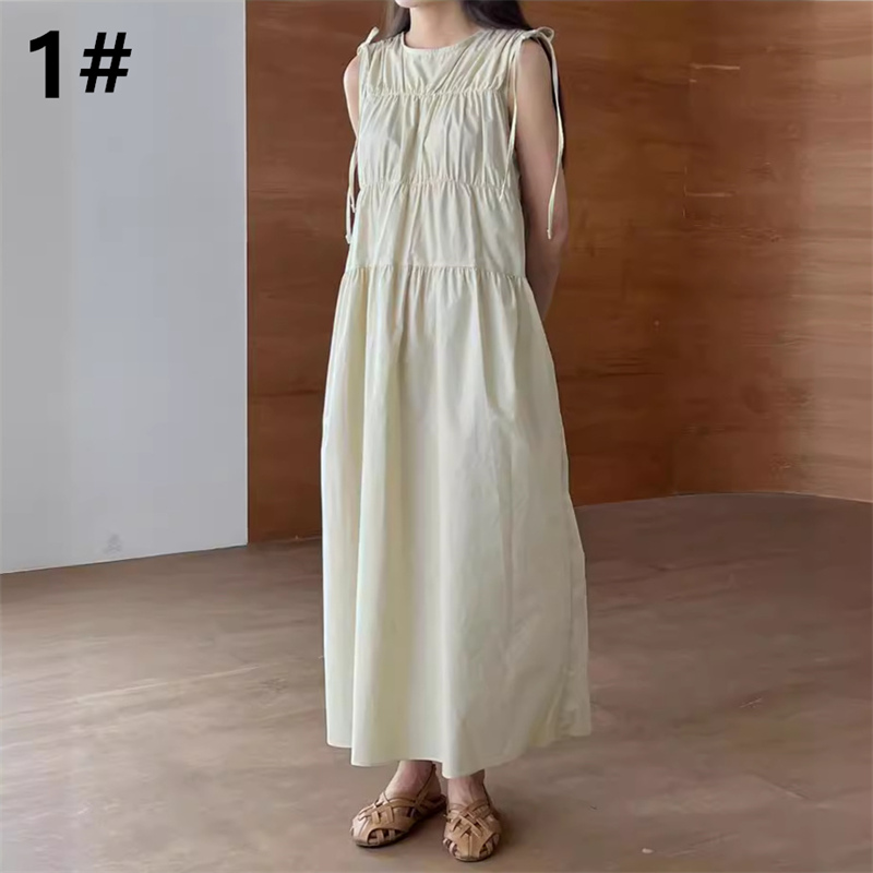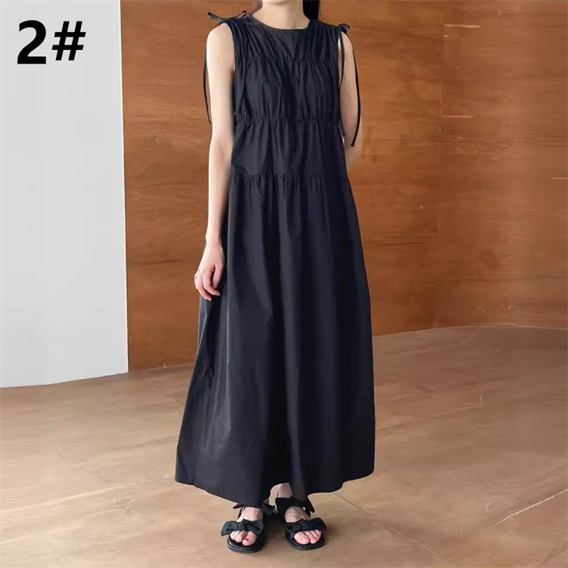 袖なしデザインで涼しく、ロングワンピースならではの上品なシルエットが魅力的。