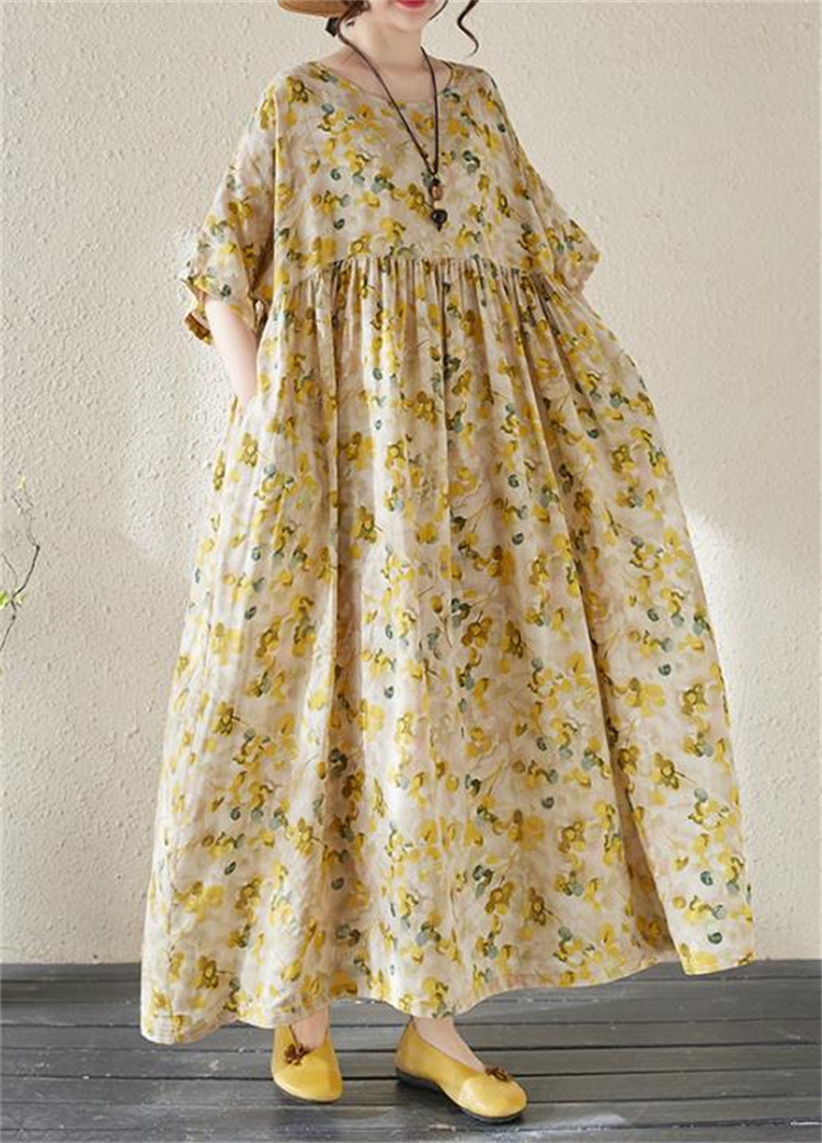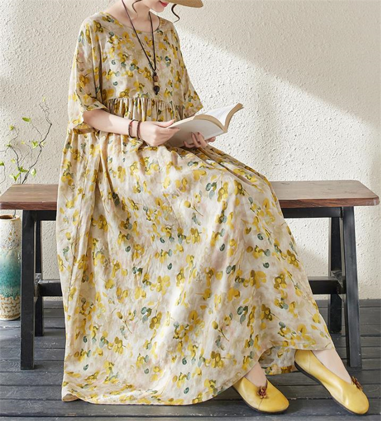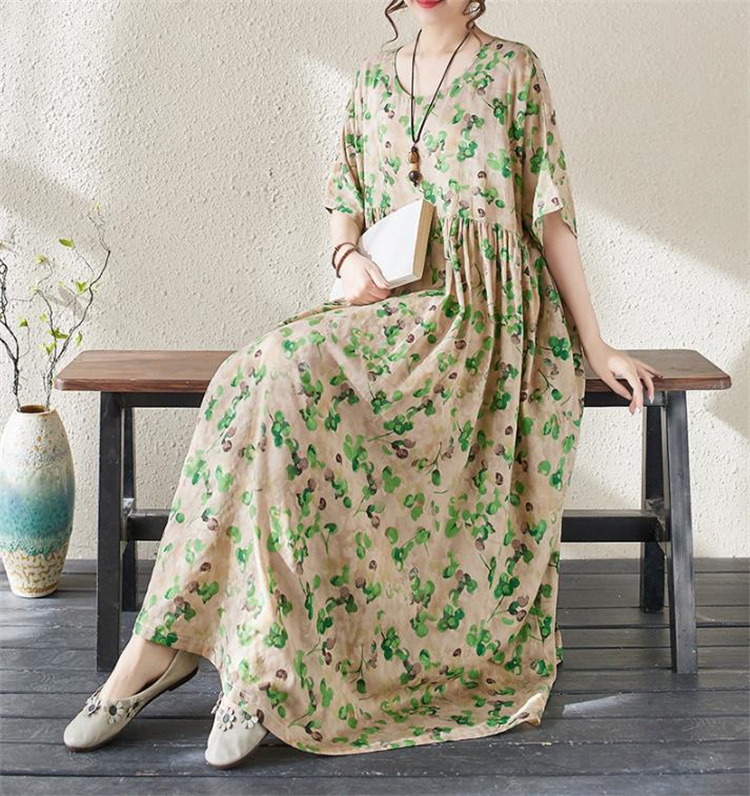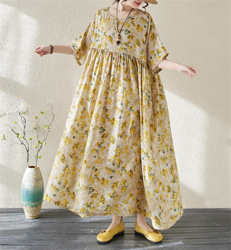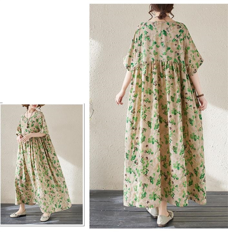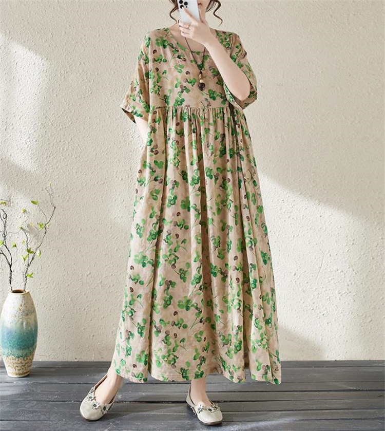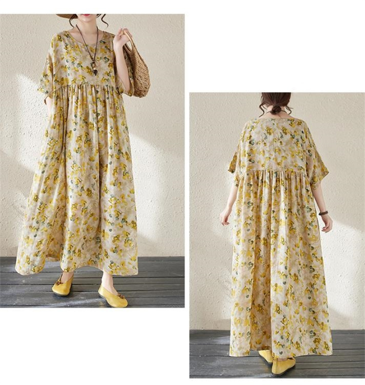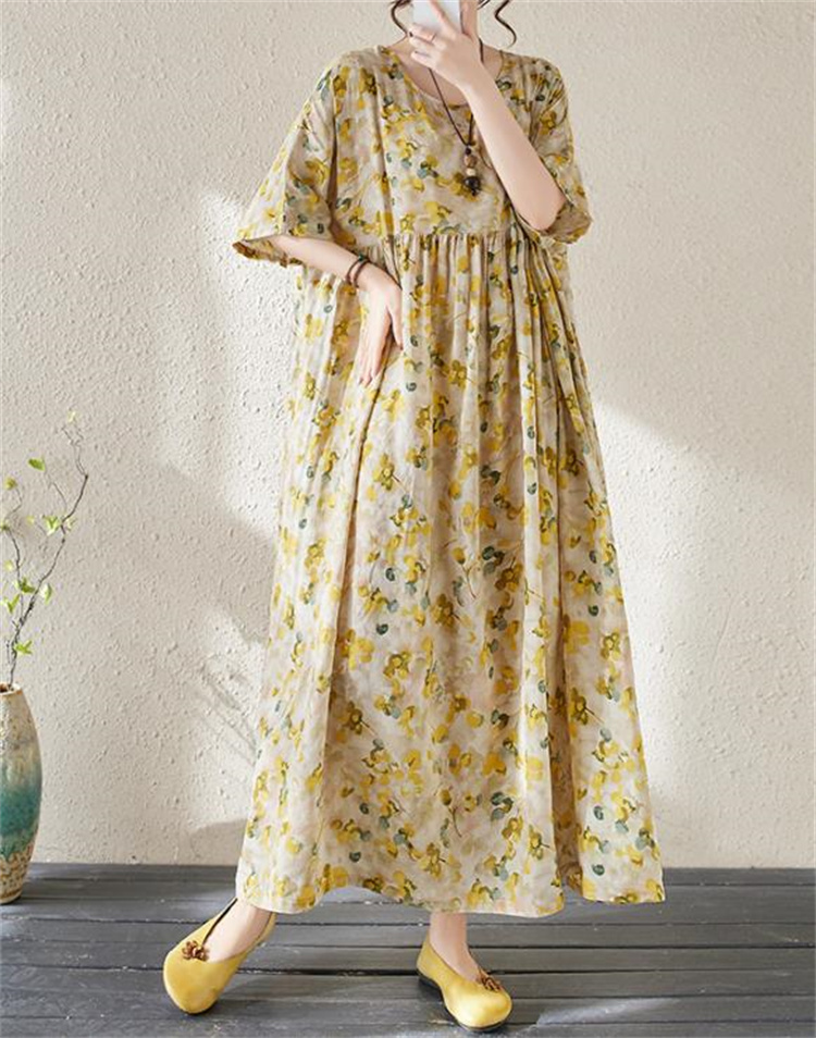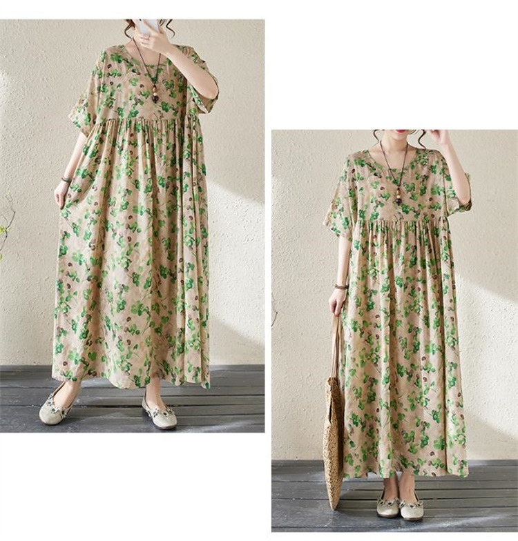 夏の定番!ヴィンテージ風プリントワンピースです。丸首&半袖デザインで涼やかな着心地◎ ボヘミアン調の大判プリントが目を引くロングシルエットで、ふんわり広がる裾が女性らしさを演出します。フリーサイズ設計で様々な体型にフィットし、透け感の少ない高品質ポリエステル素材を使用しているため、通勤にもお出かけにも最適です。洗濯機で手軽にお手入れ可能なのもうれしいポイント! シンプルなデザインながら存在感抜群の一枚で、夏のコーディネートを華やかに彩ります