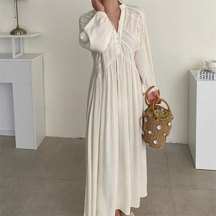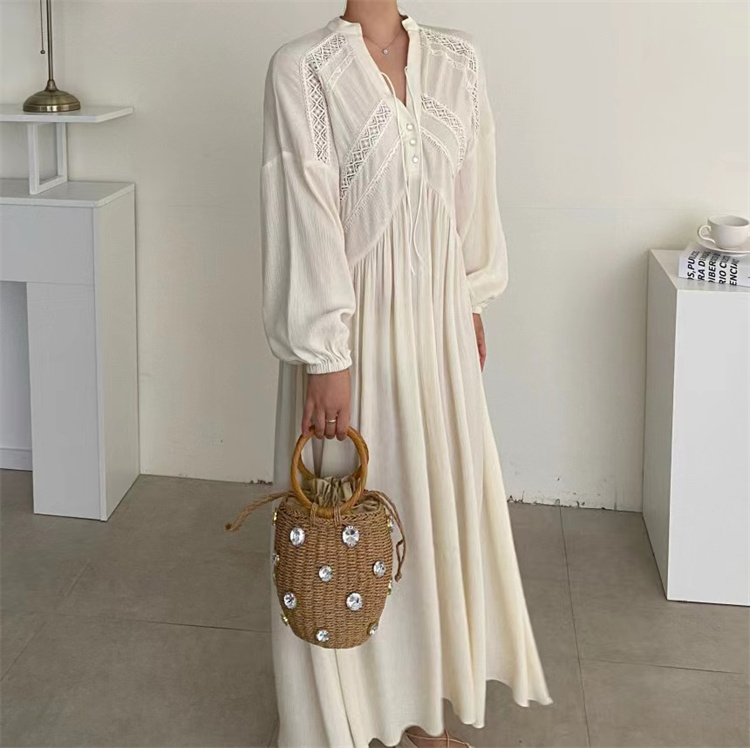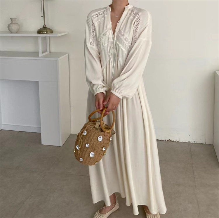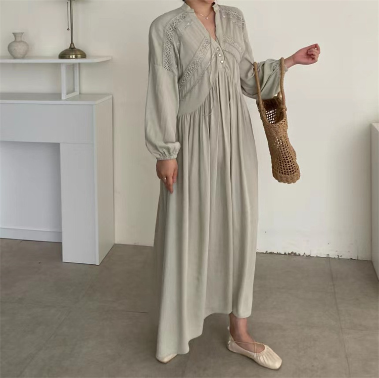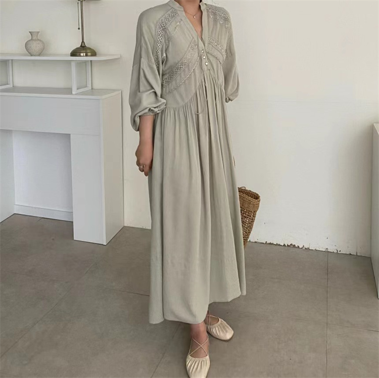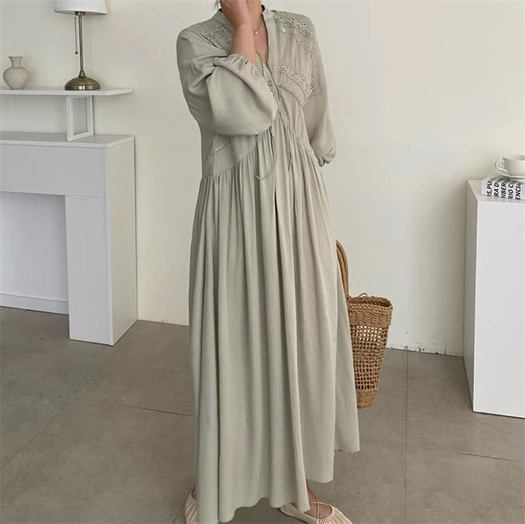 復古風の魅力あふれるシャツタイプのロングワンピース