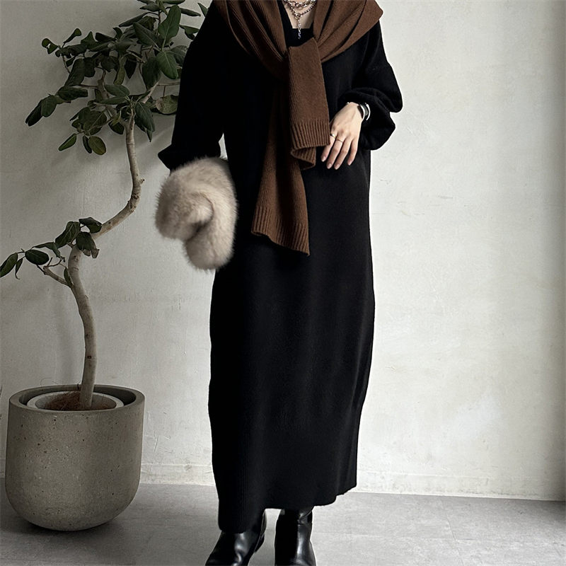 今季注目の上品なニットロングワンピースが登場。