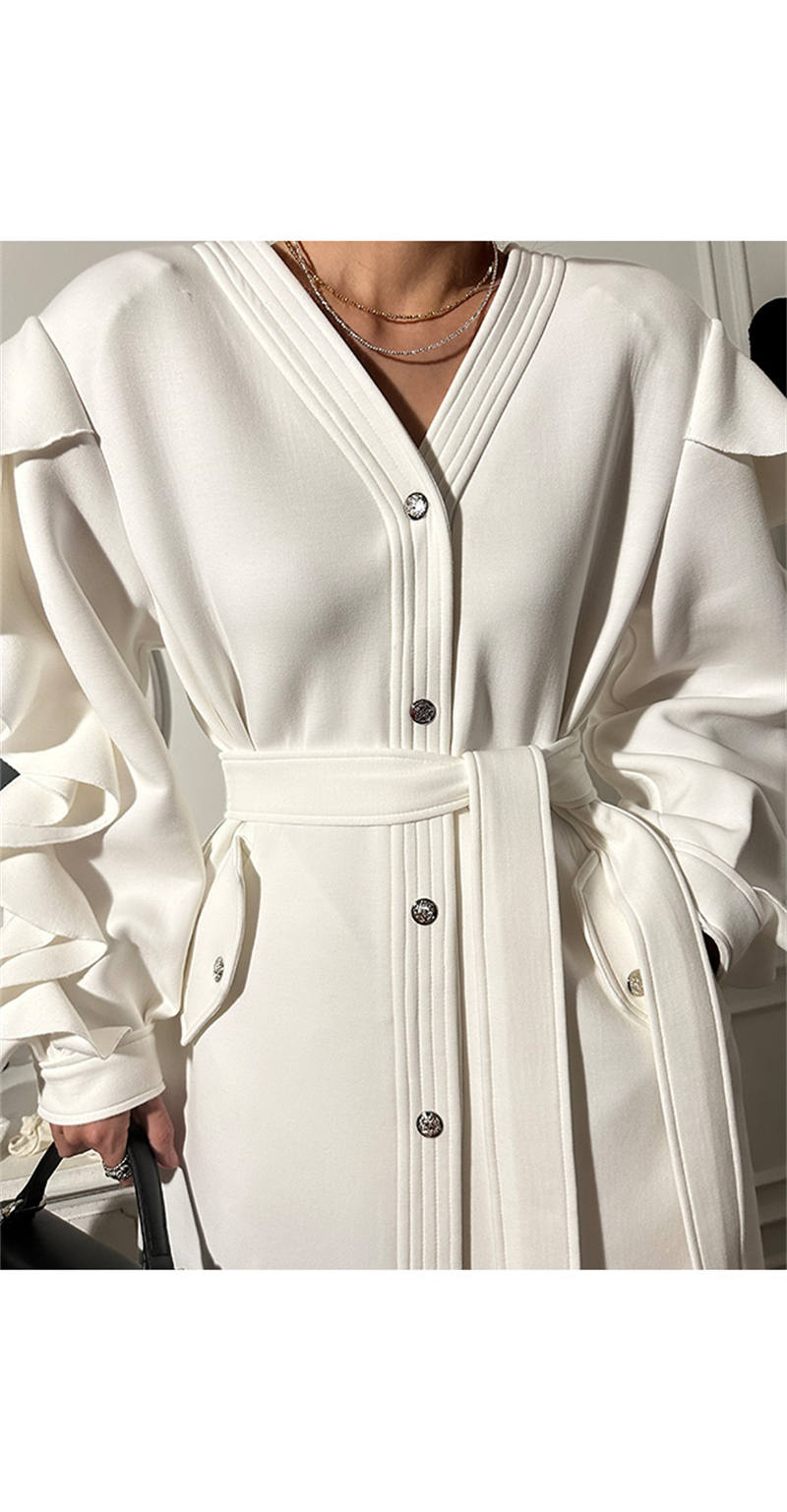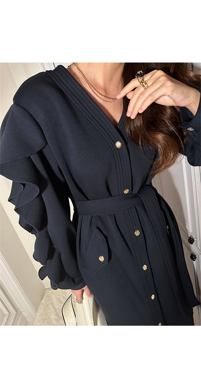 エレガントなフリル袖が印象的なシャツワンピースです。
