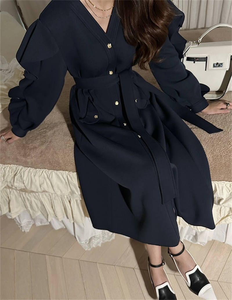 ウエストベルト付きで美しいシルエットを演出します。