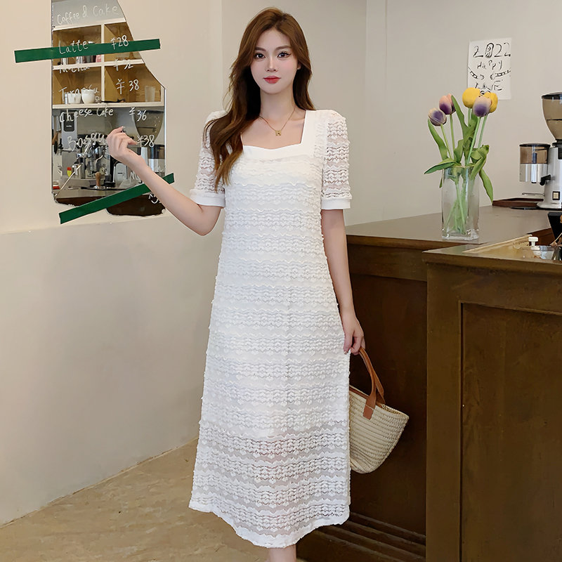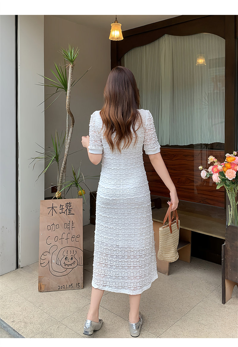 繊細なレース編みが美しい韓国風デザインのロングワンピースです。