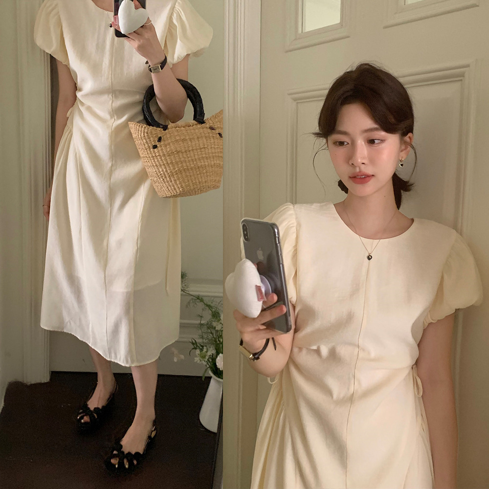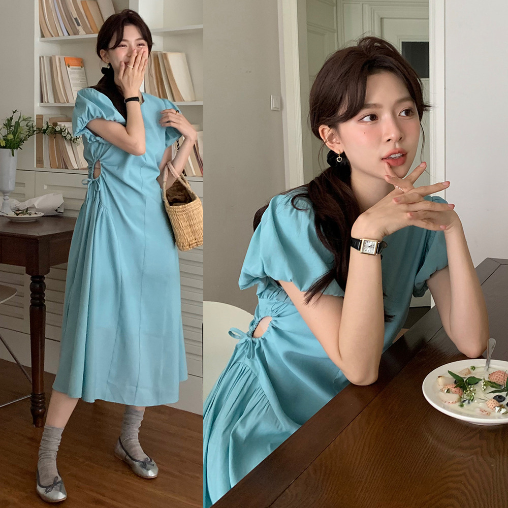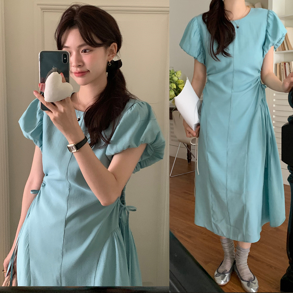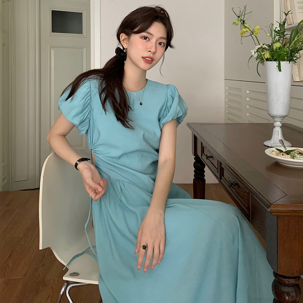 上品な韓国風デザインが魅力のロングワンピースです。