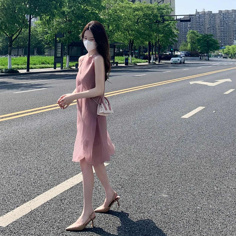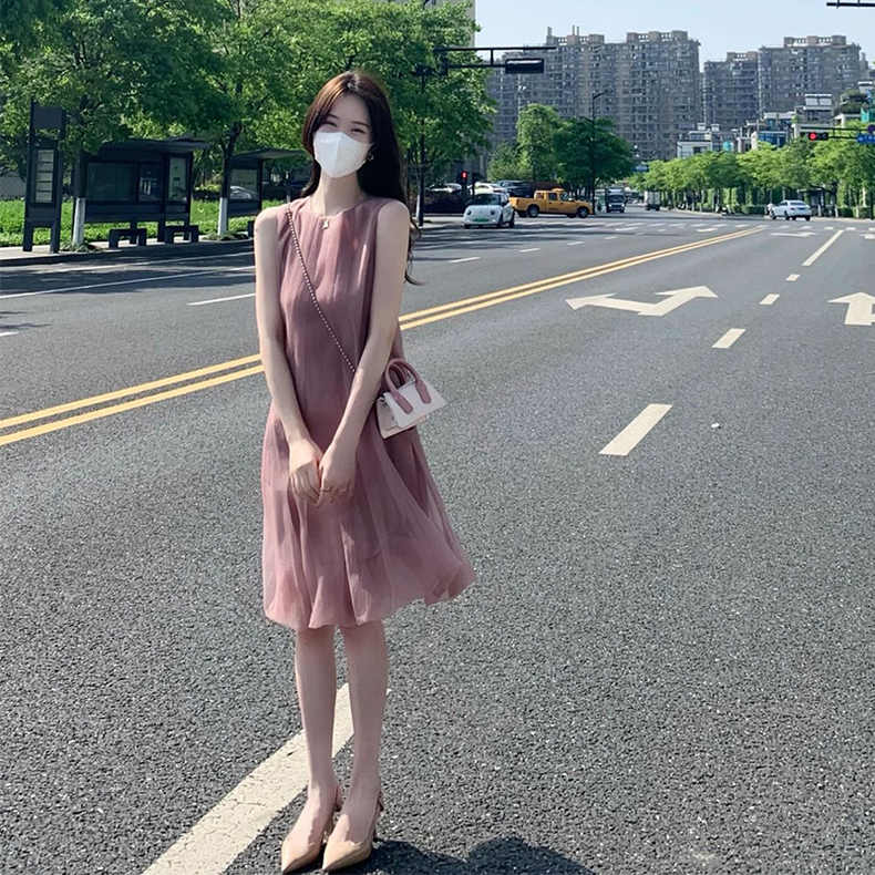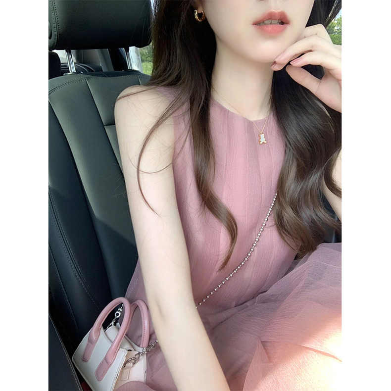 エレガントで上品な印象を演出するノースリーブのロングワンピース。