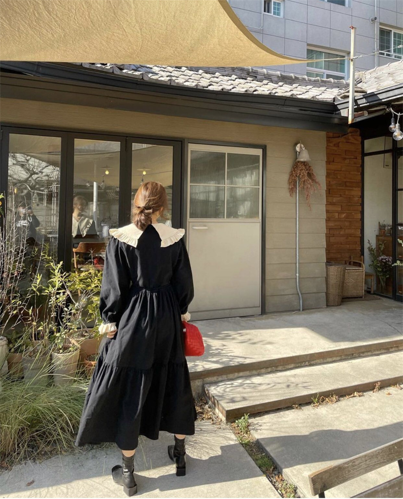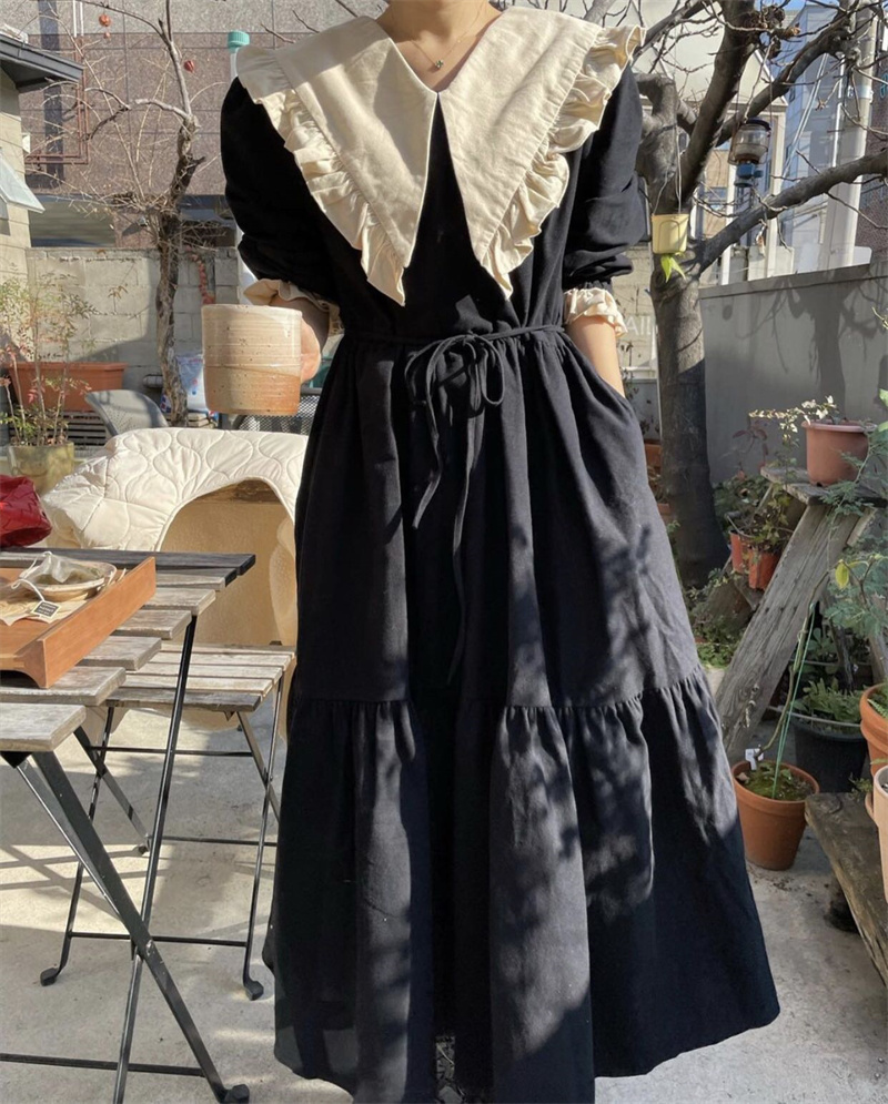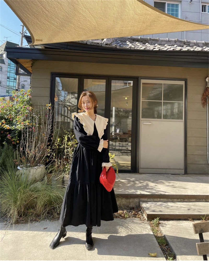 レトロな雰囲気が魅力的な秋の新作ロングワンピース。