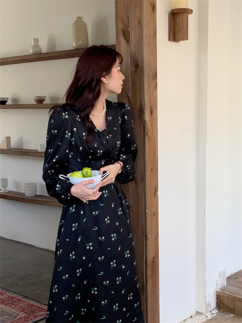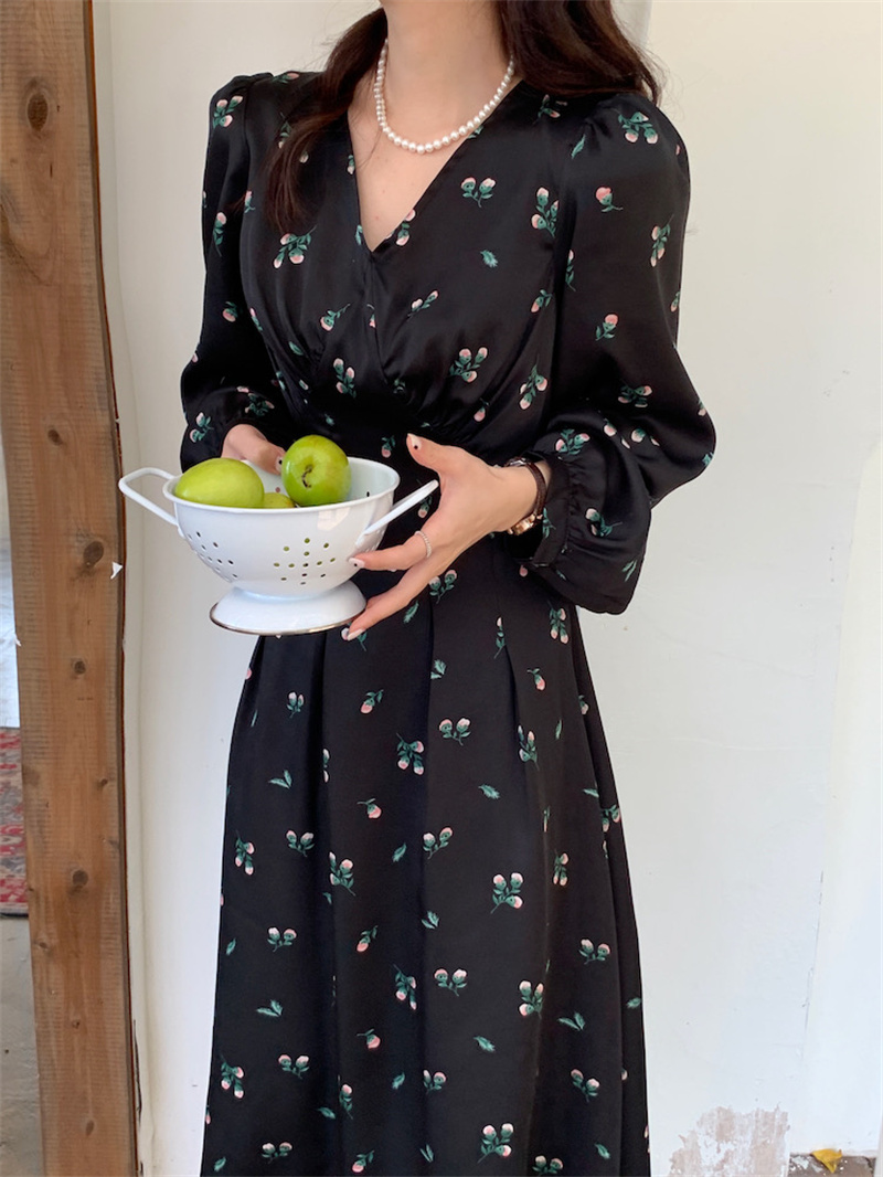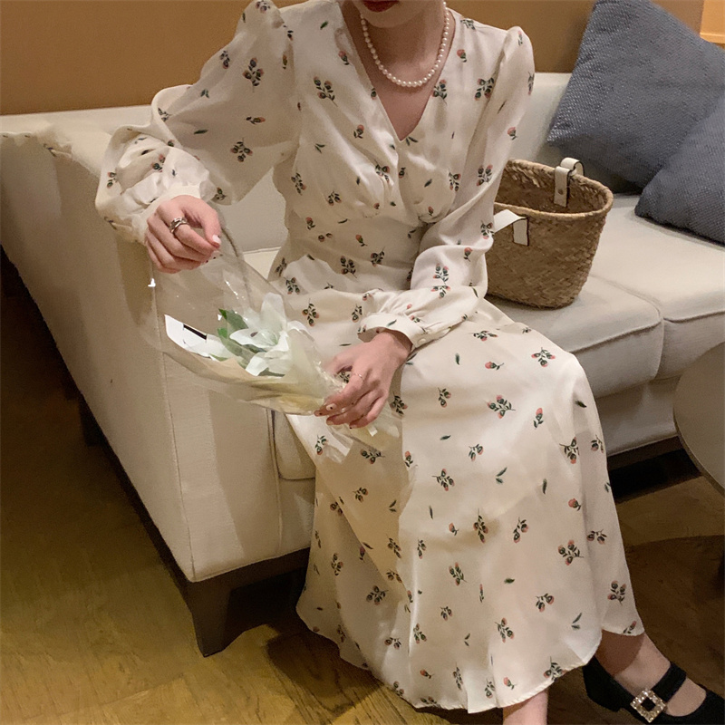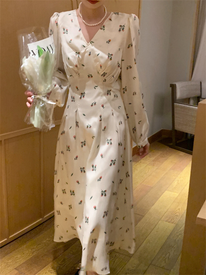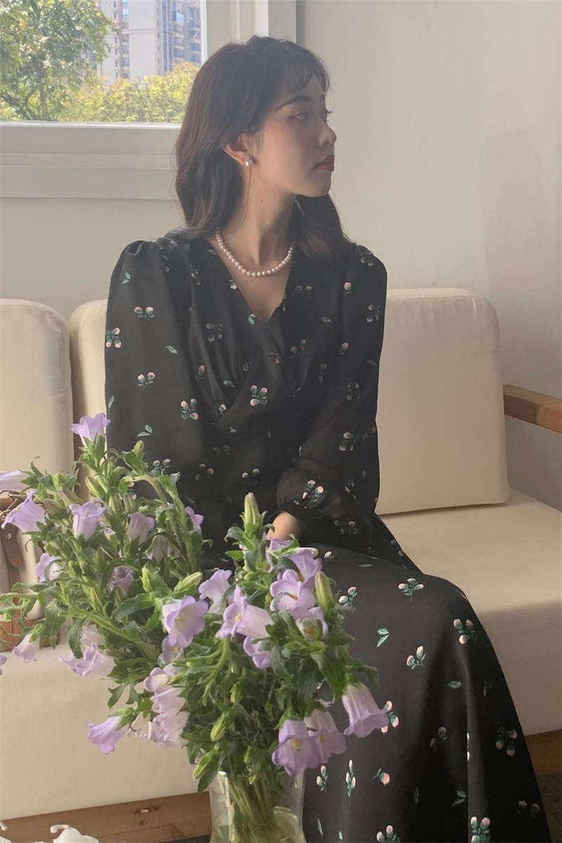 上品な小花柄が魅力的なシャツタイプのロングワンピースです。