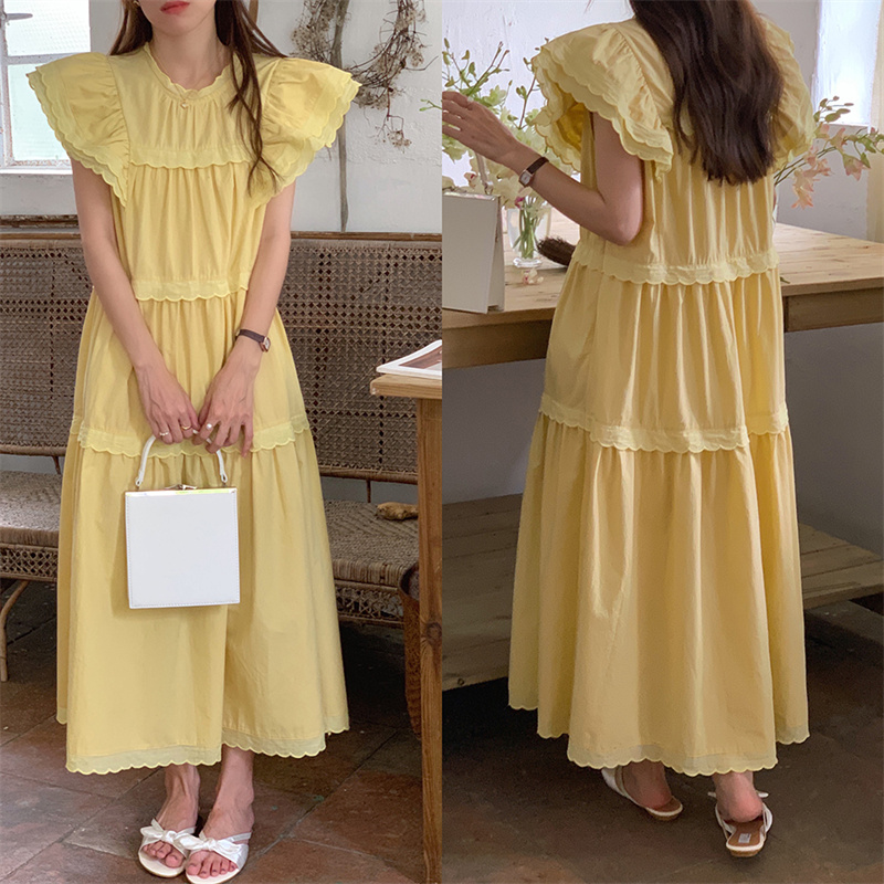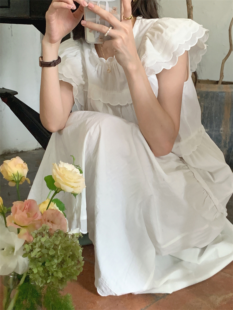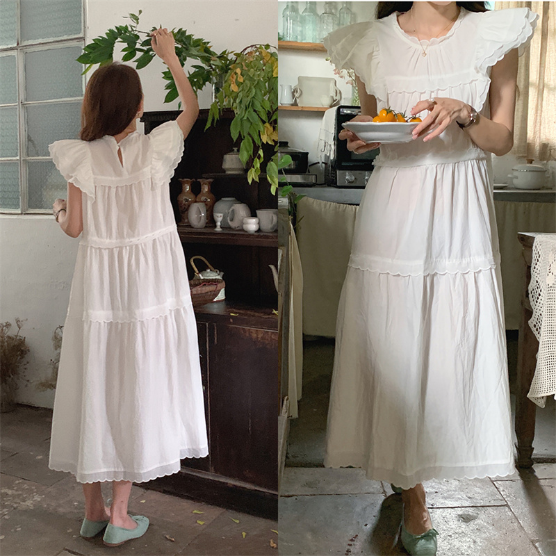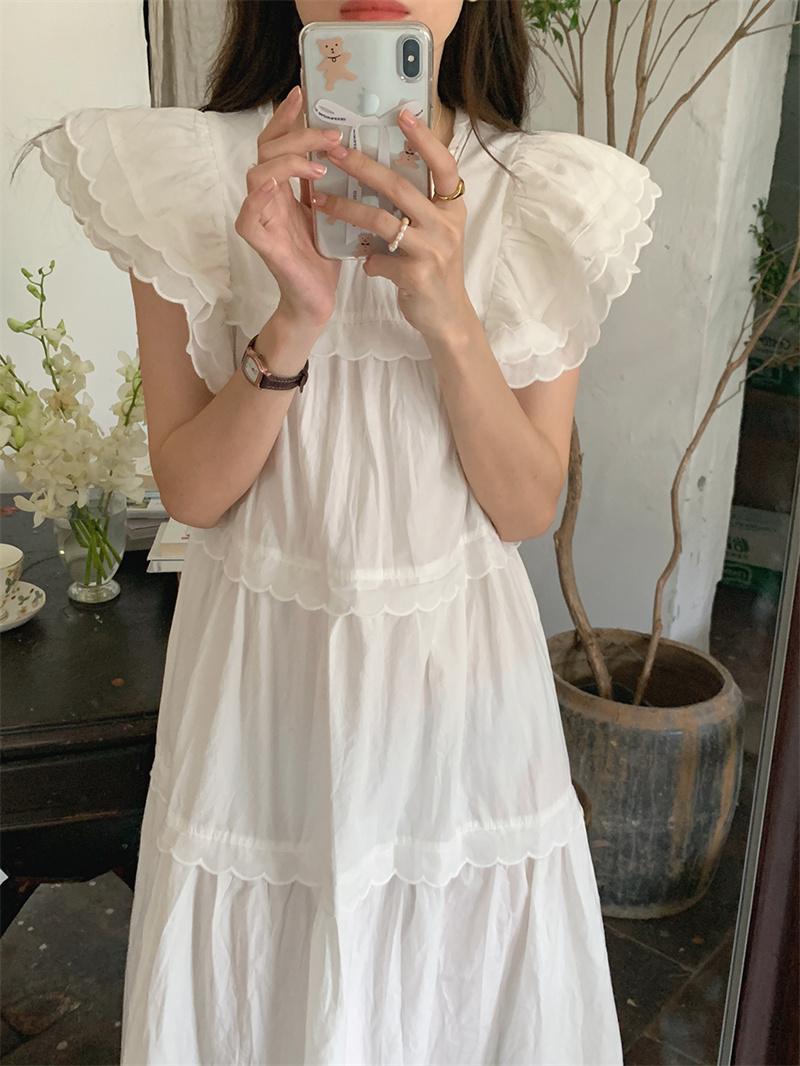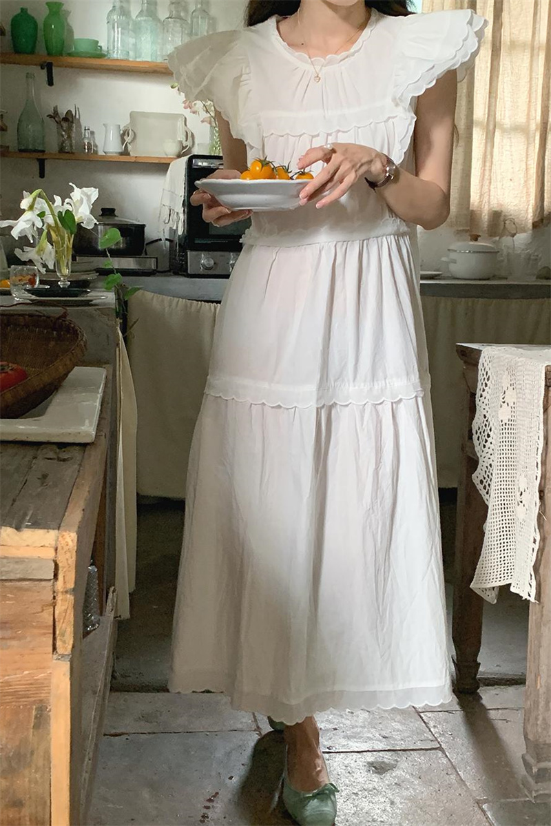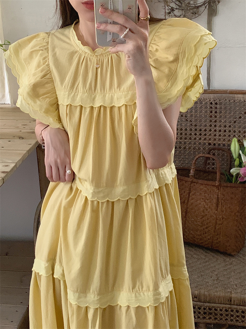 フリル袖とティアード切り替えデザインが女性らしさを演出し、