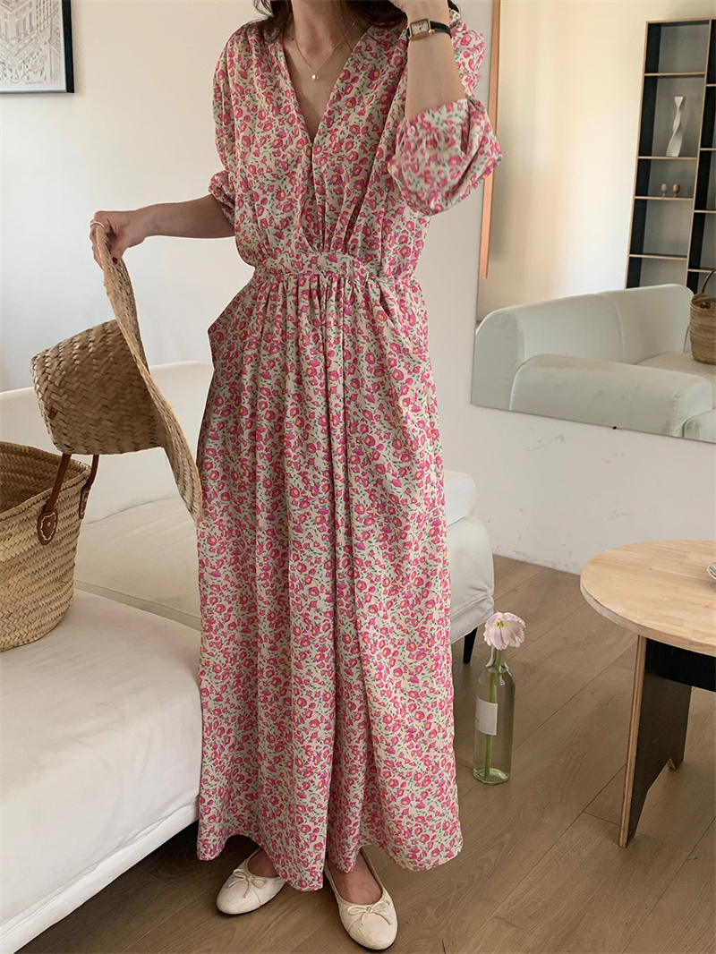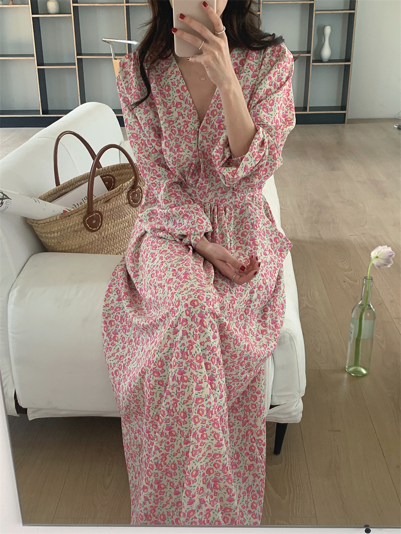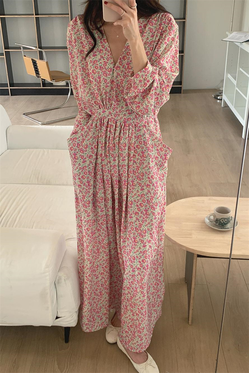 上品な小花柄が魅力的な長袖シャツワンピースです。