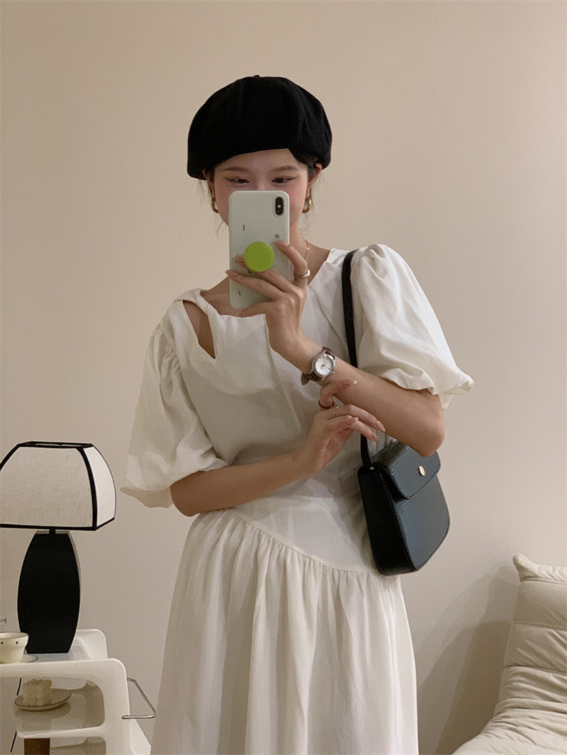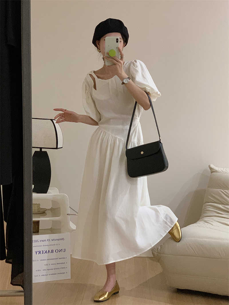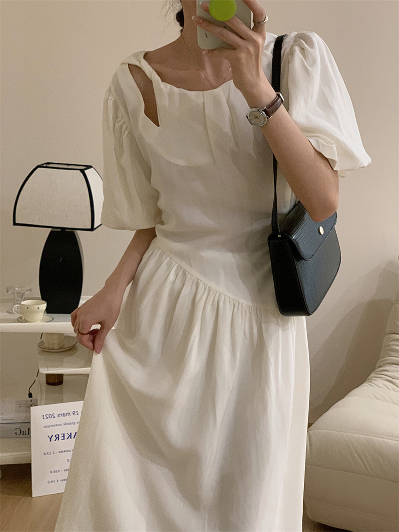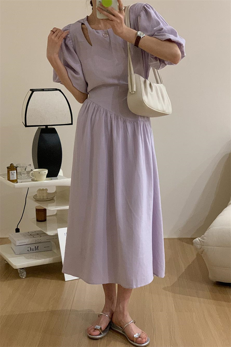 優雅なパフスリーブが特徴的なシャツワンピース。