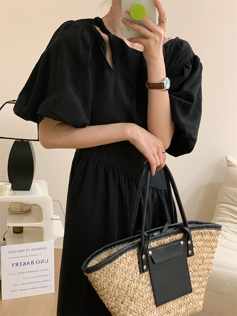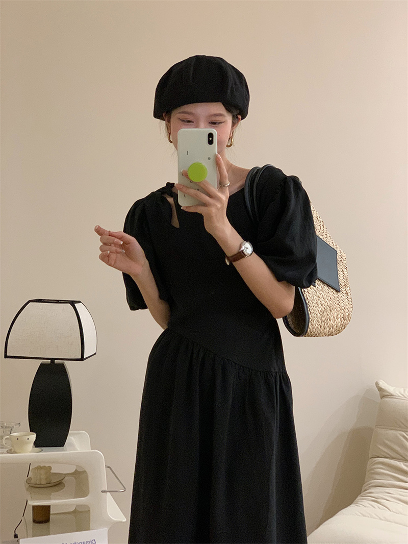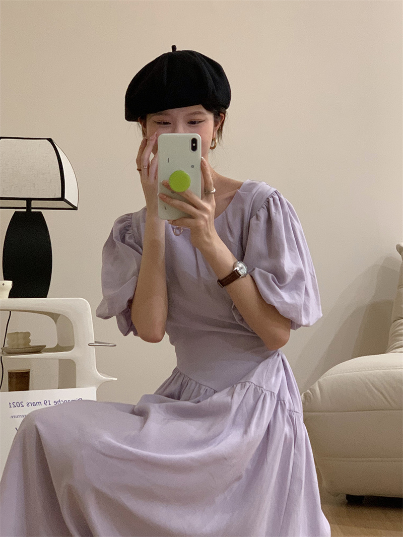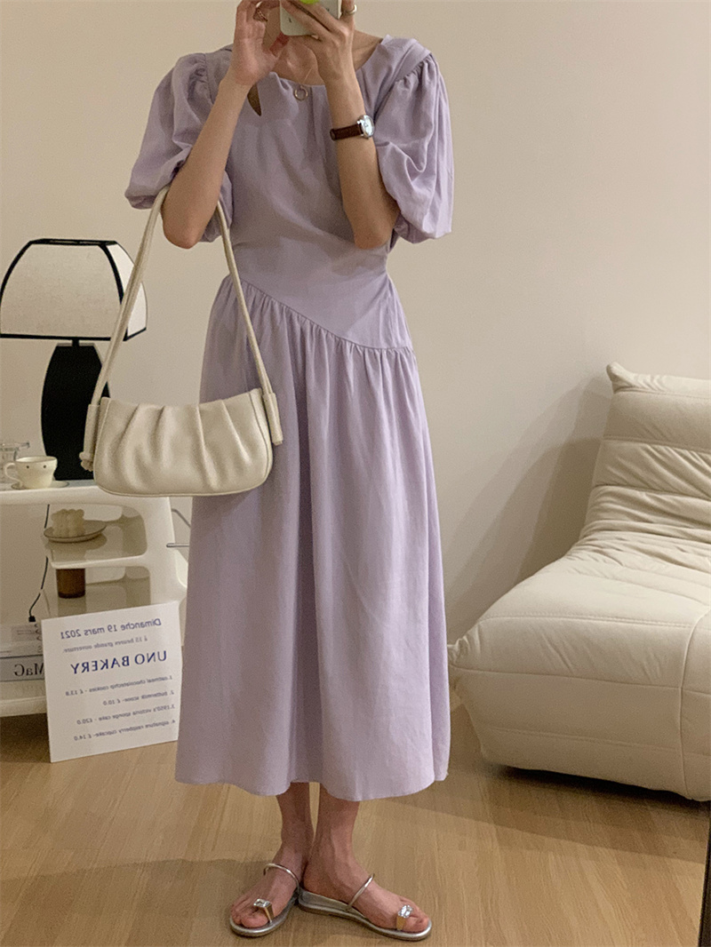 優雅なパフスリーブが特徴的なシャツワンピース。