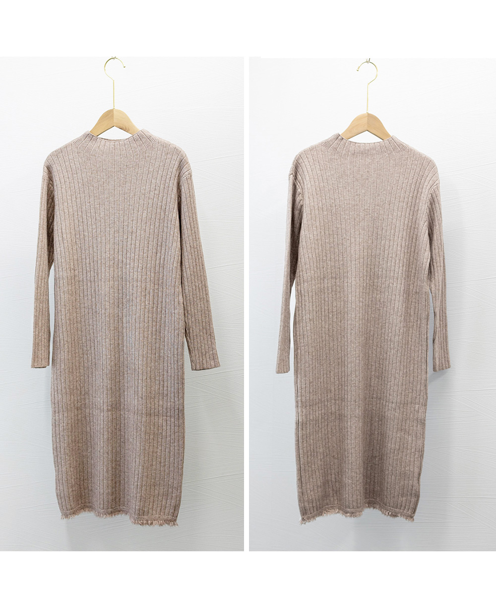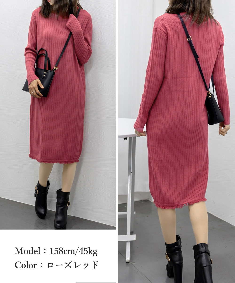 太めのリブ編みが美しいボディラインを演出し、体型カバー効果も抜群