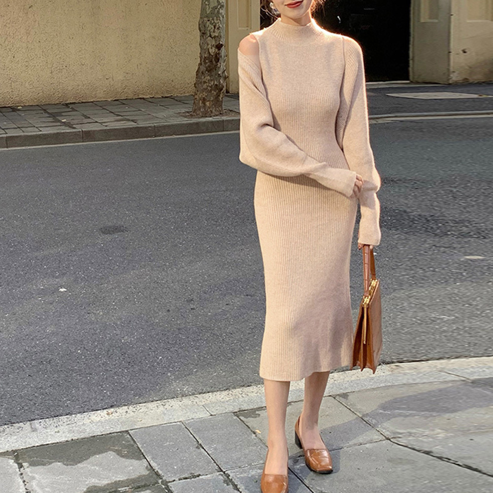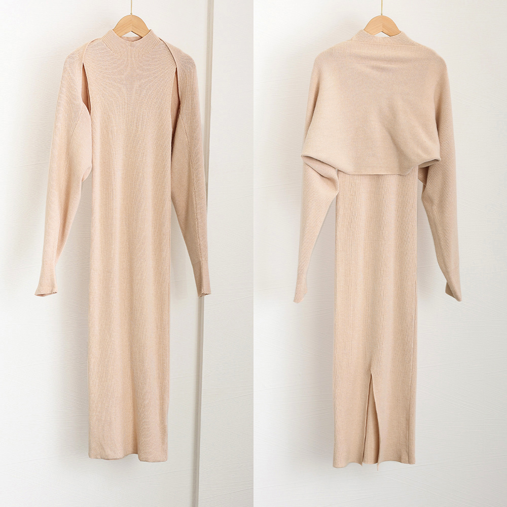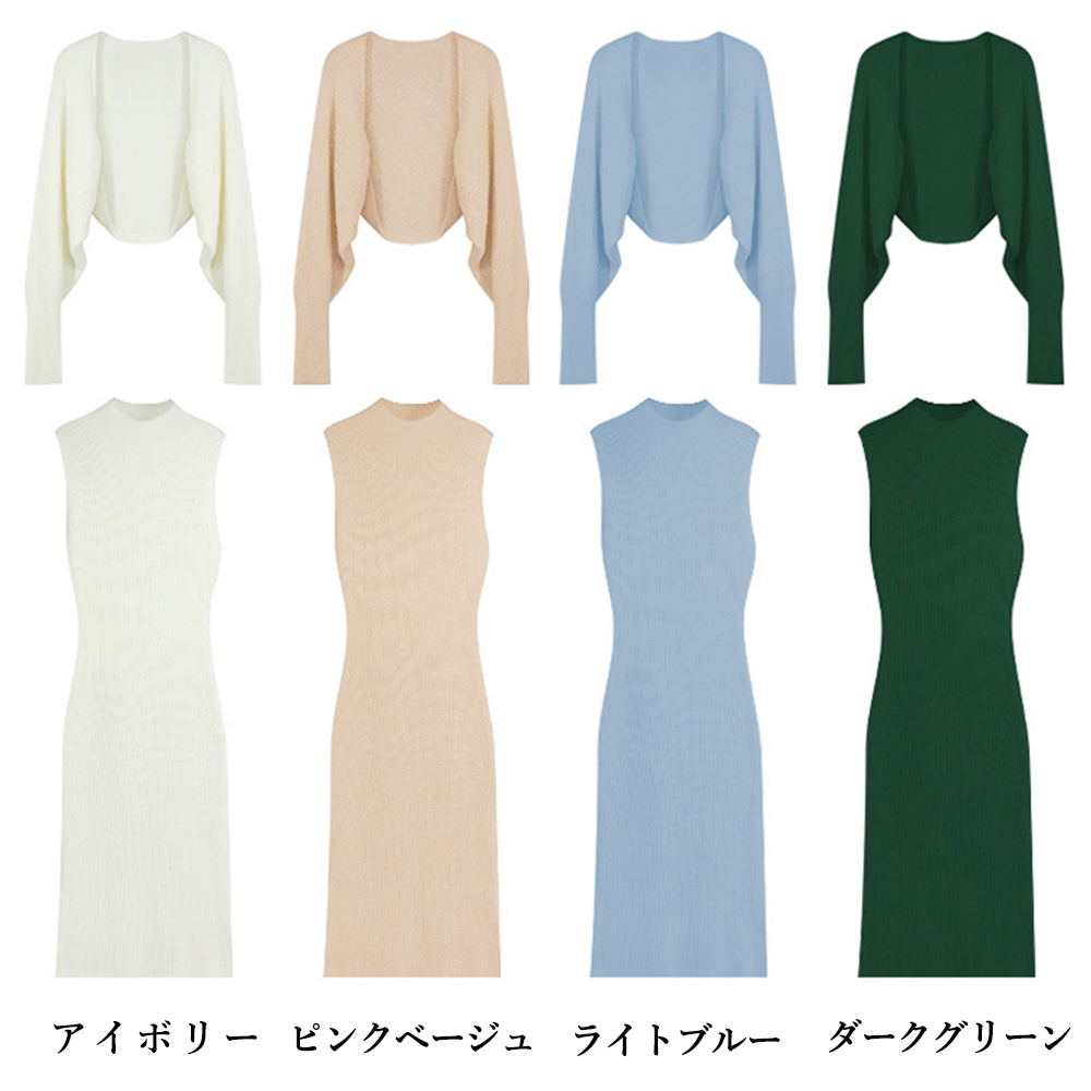 上品で女性らしいニット ロングワンピースのアンサンブルセットです。