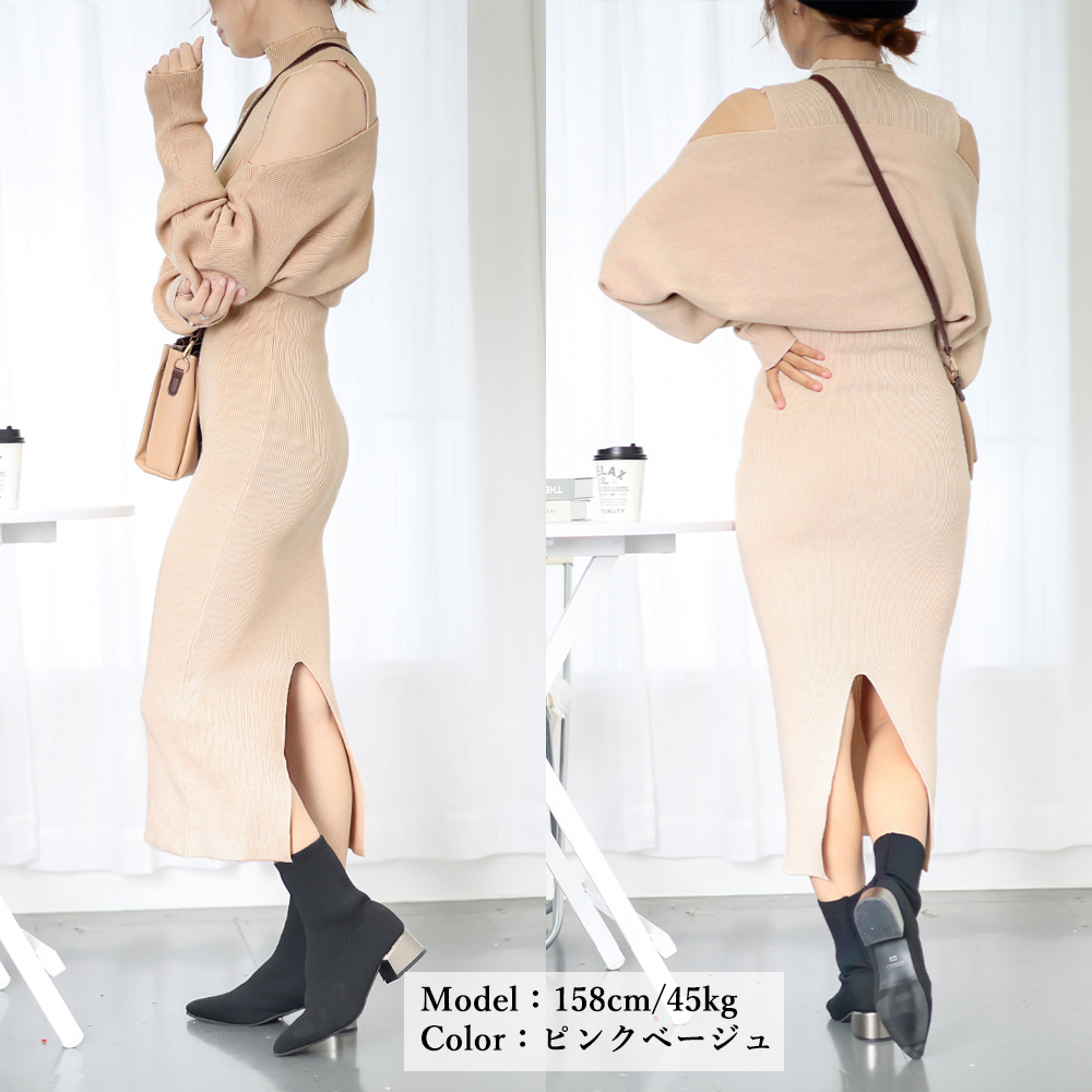 カラー:アイボリー/ピンクベージュ/ライトブルー/ダークグリーン サイズ:ワンサイズ トップス: 着丈:約36cm ゆき:約77cm 胸囲:約フリーcm ワンピース: 総丈:約110cm 肩幅:約25cm 身幅:約30cm 胸囲:約60-100cm ウエスト:約60-100cm ヒップ:約65-110cm 裏地:なし 伸縮性:あり 透け感:アイボリーのみややあり ※ニット素材の為、伸縮具合によっては編みに隙間を感じる場合があります。 ※すべて平置きサイズです(採寸方法違いより、多少の誤差がございますので、ご了承ください)。