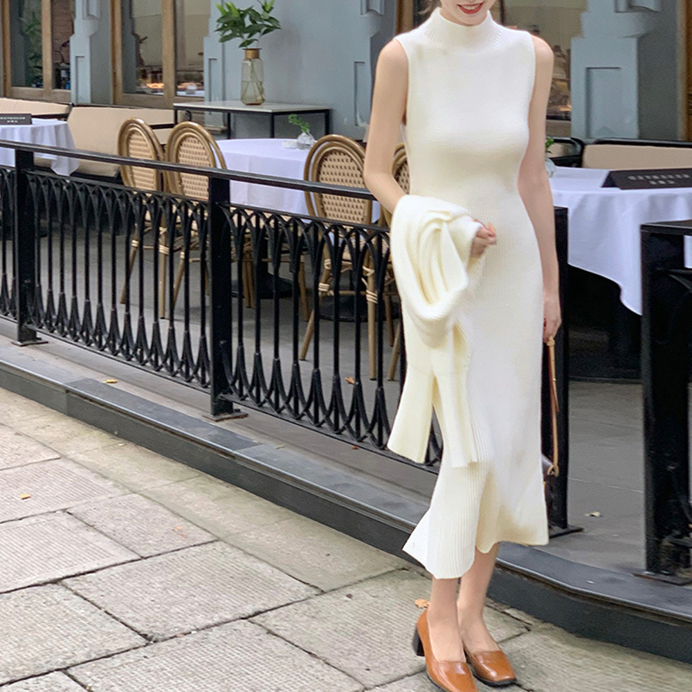 体のラインを美しく見せるタイトなシルエットと、バックスリットが洗練された印象を演出します。