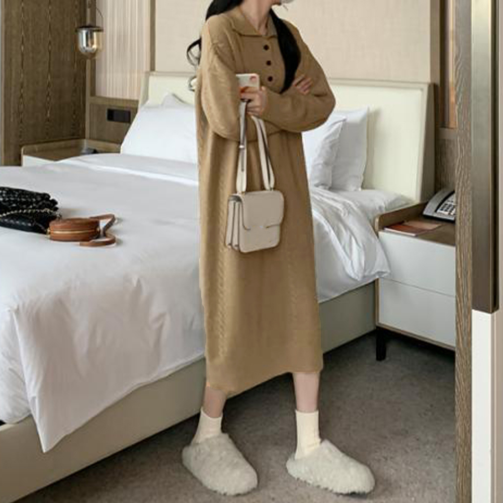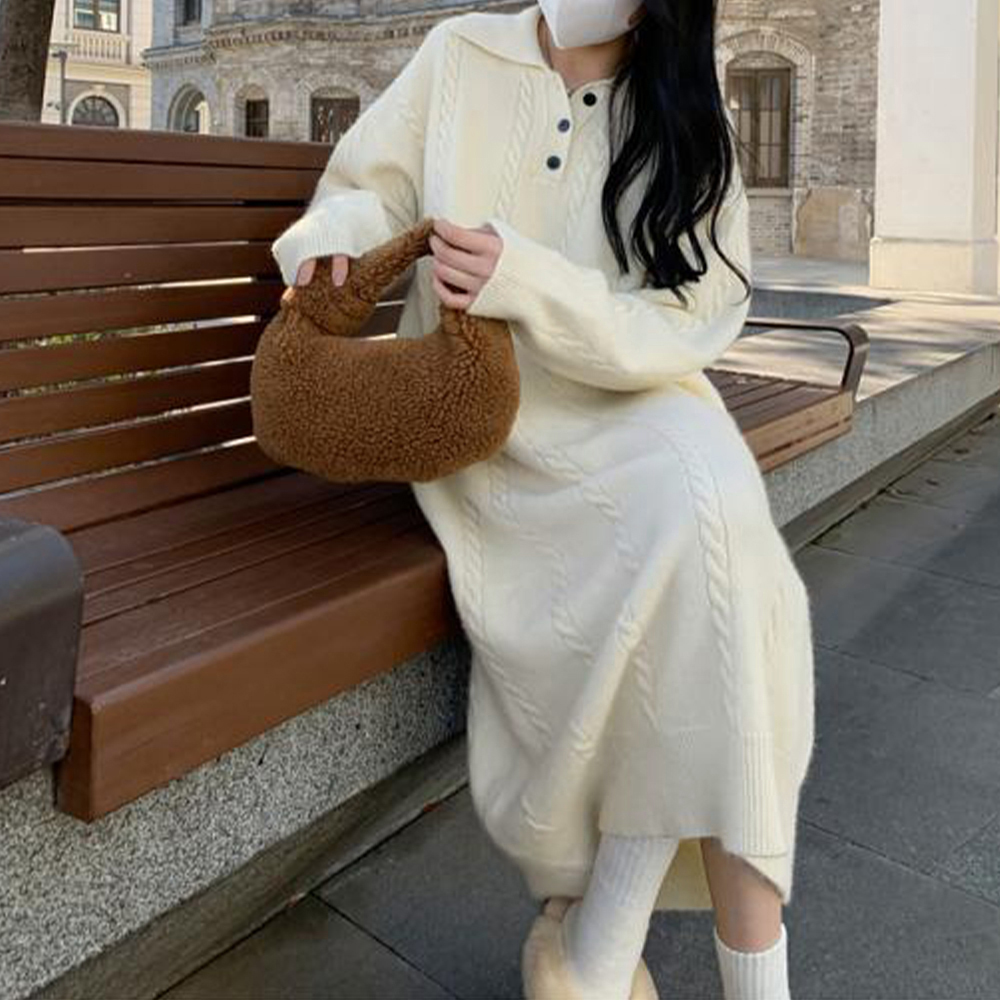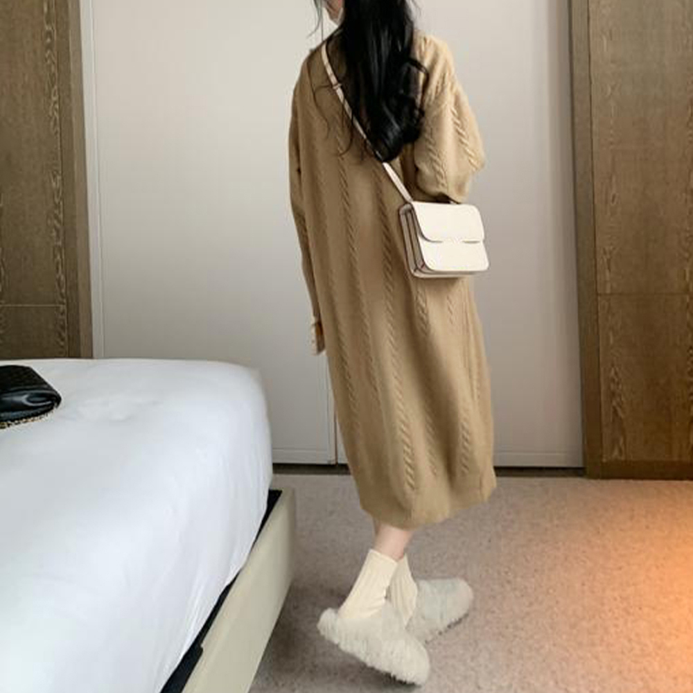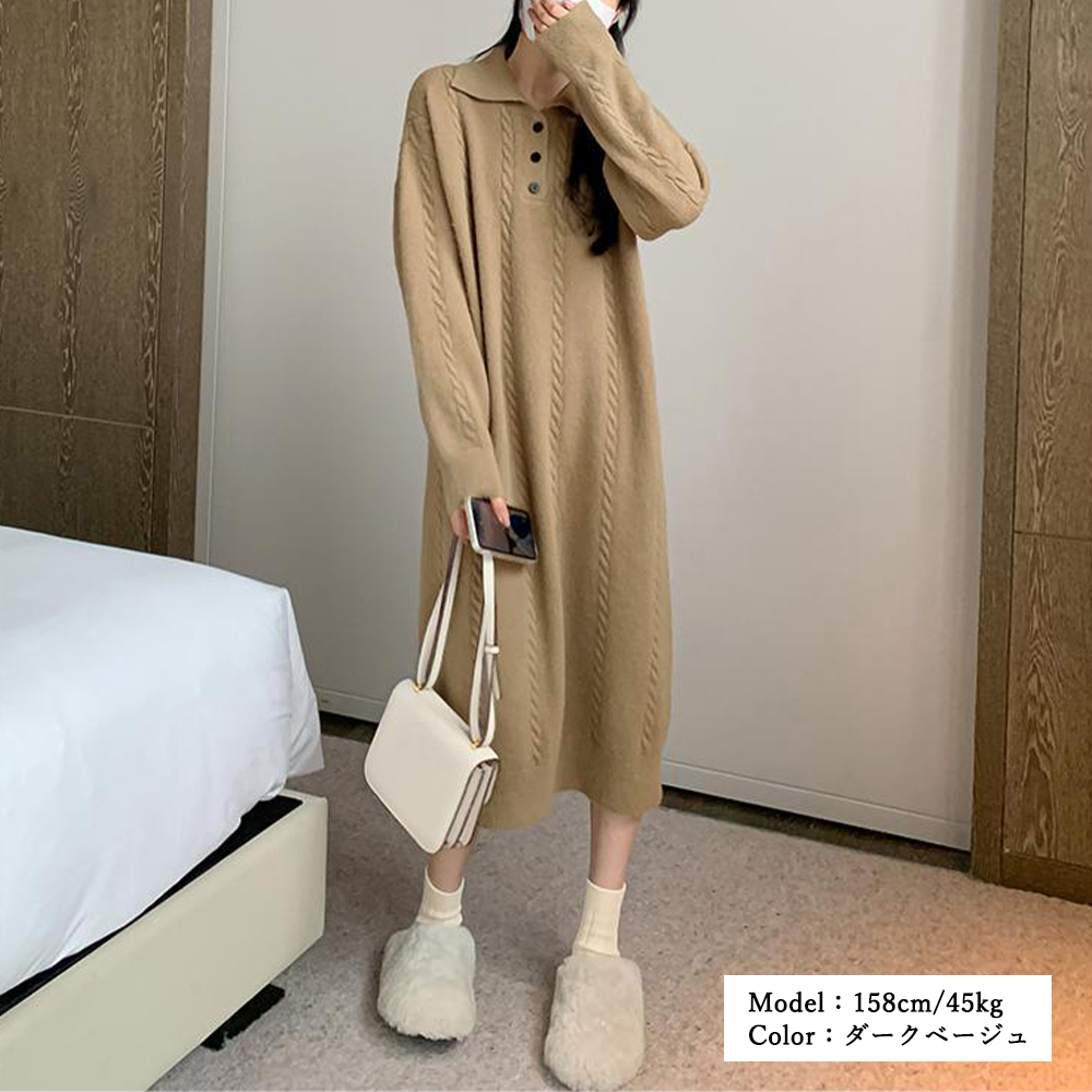 ふんわりとした心地よい肌触りが魅力のケーブル編みロングワンピース。