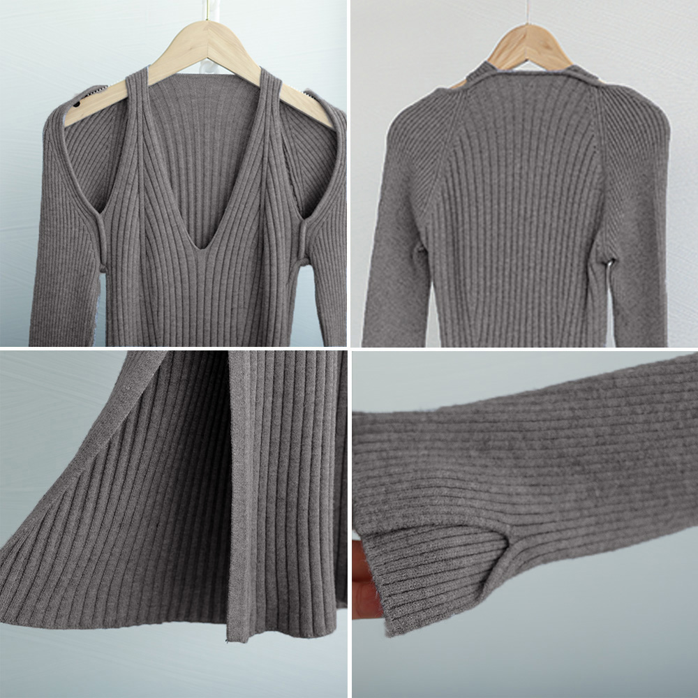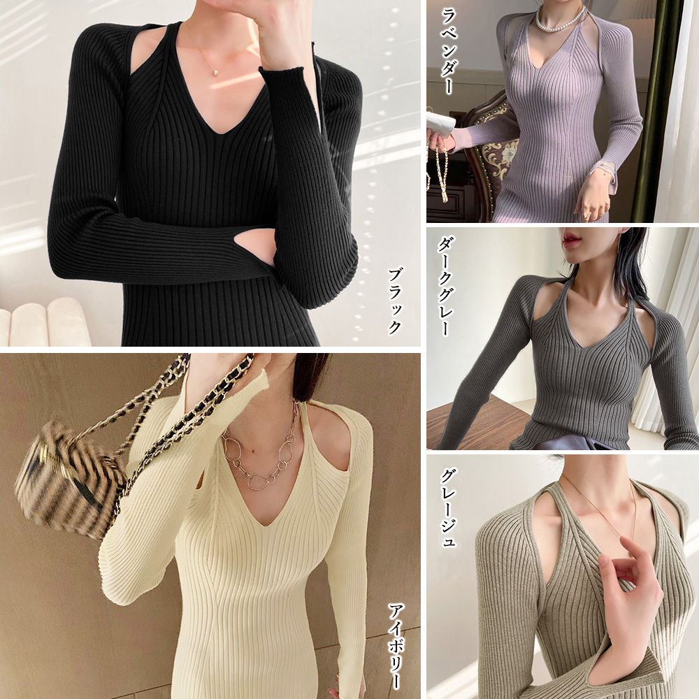 リブニット素材がボディラインにフィットし、着痩せ効果も抜群です。