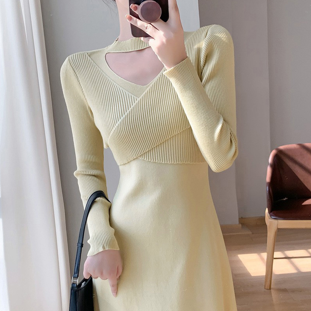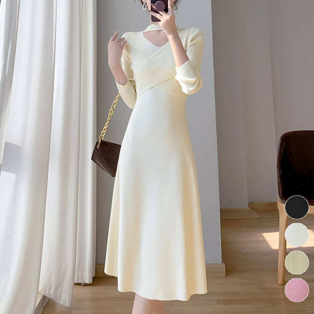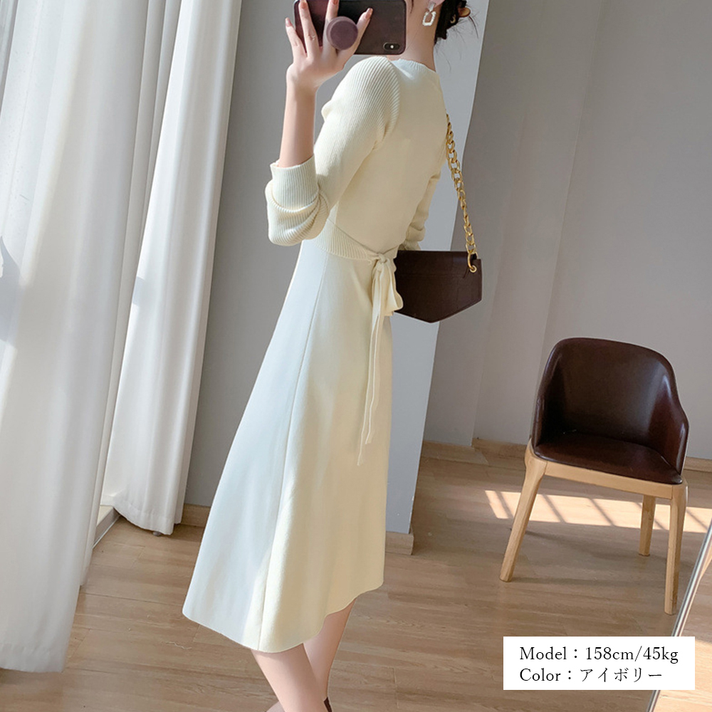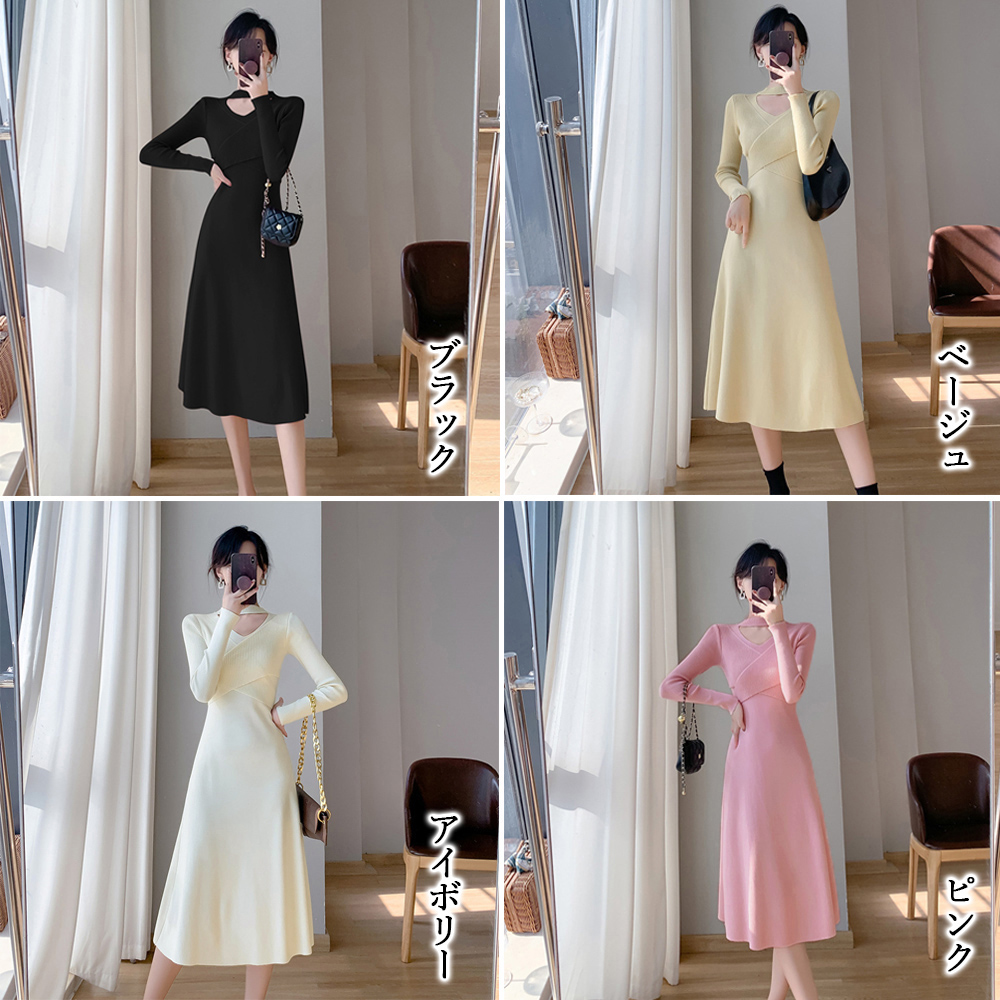 事務服から結婚式まで多様な場面で活躍するニットロングワンピースです。