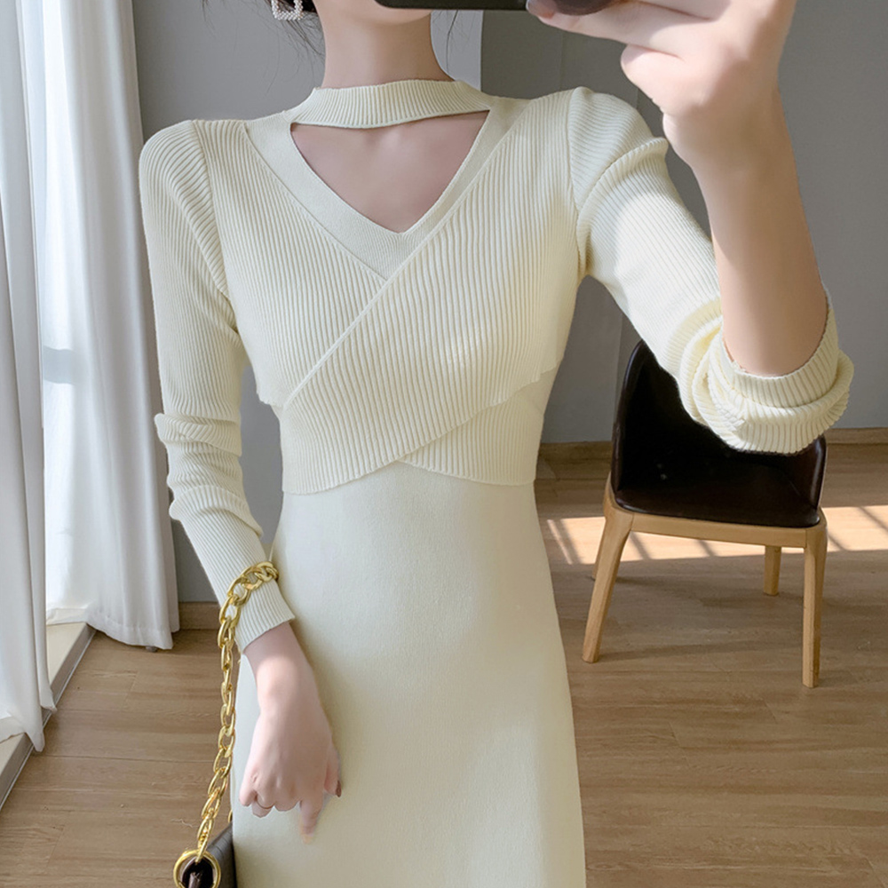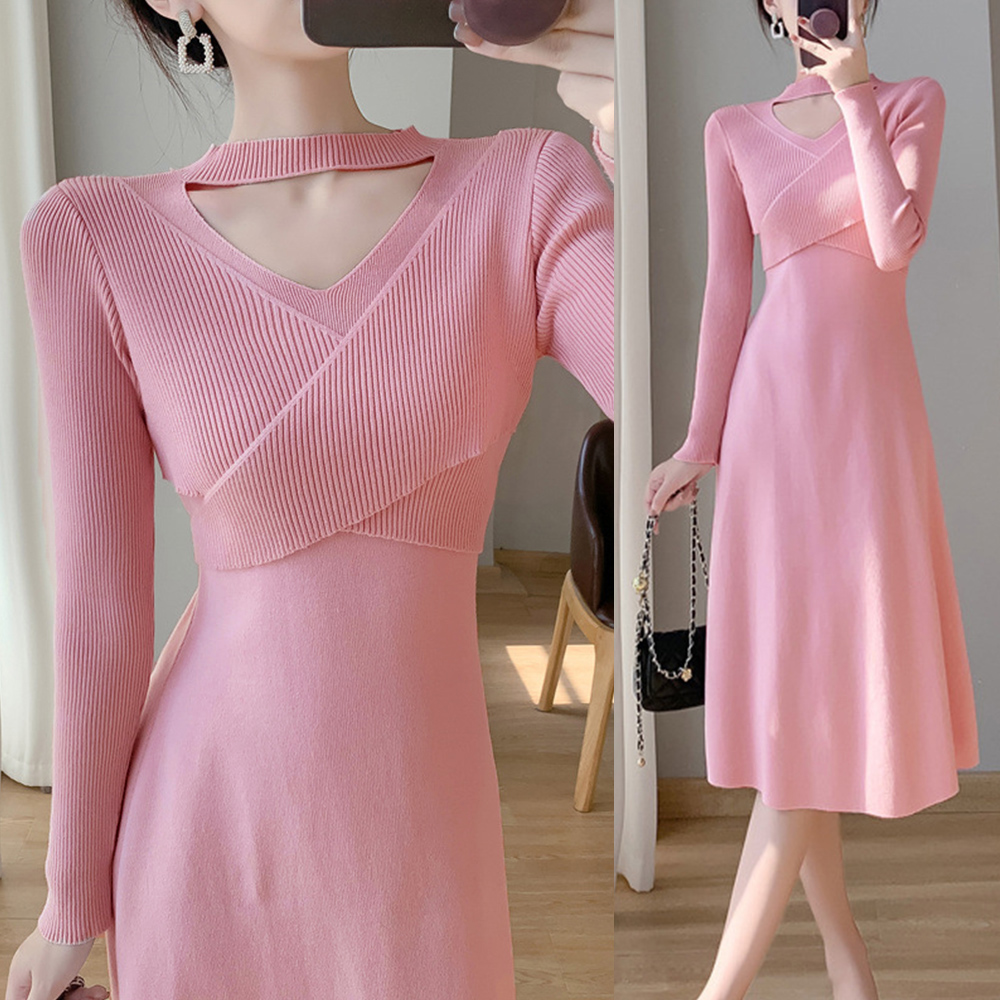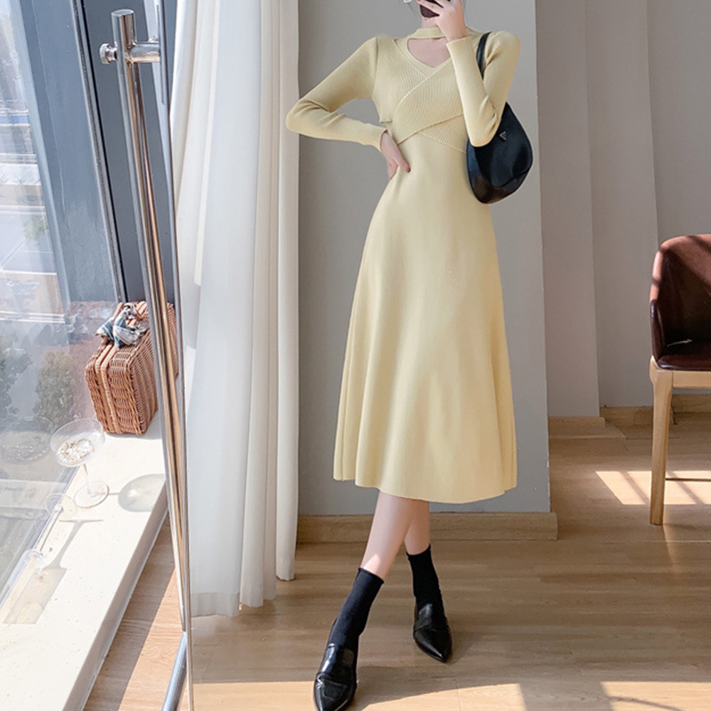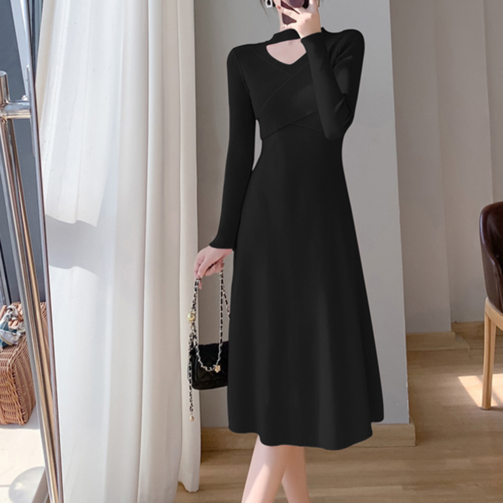 事務服から結婚式まで多様な場面で活躍するニットロングワンピースです。