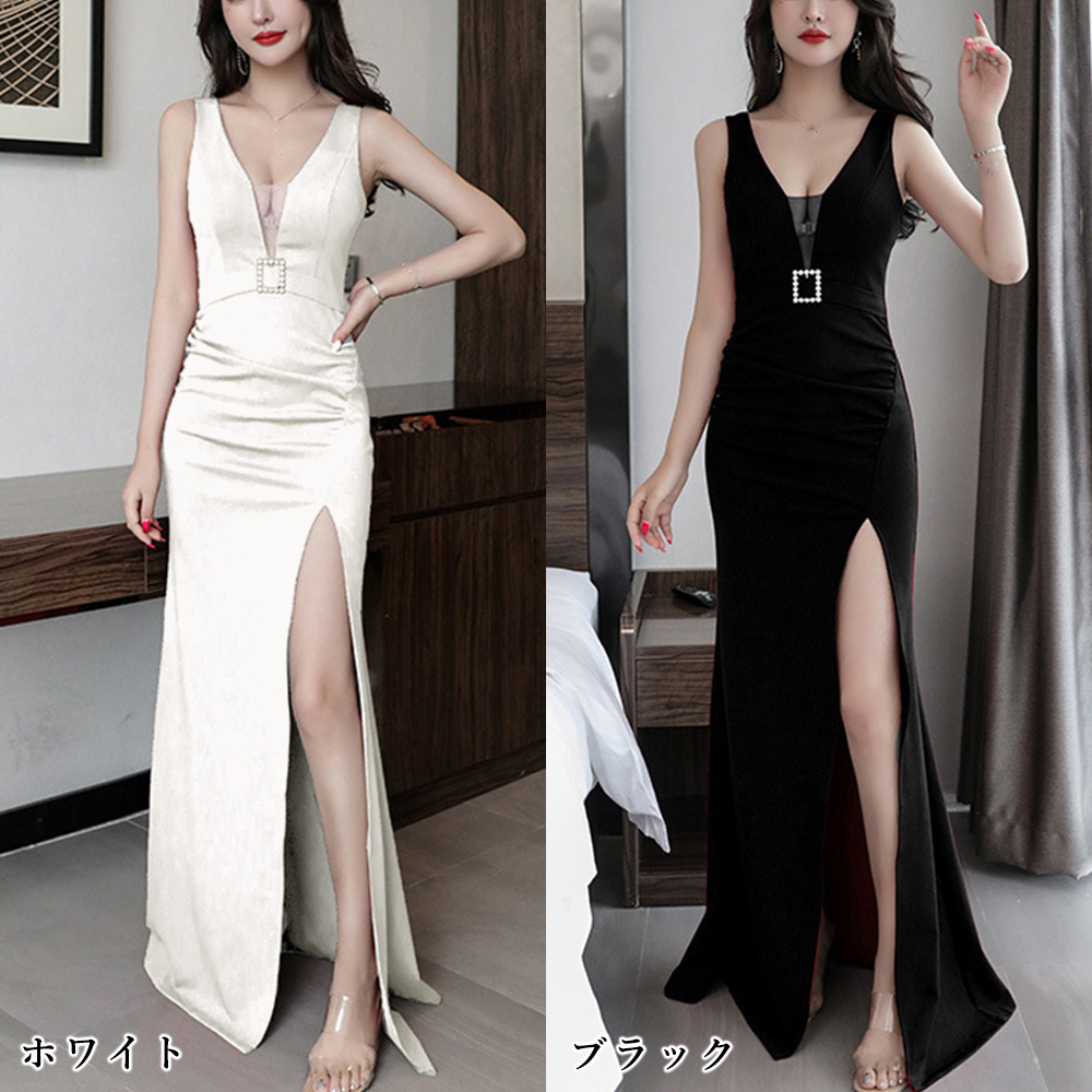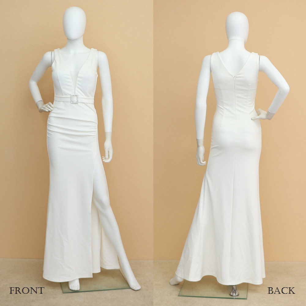 上品さと華やかさを追求した深い胸元のロングワンピースです。