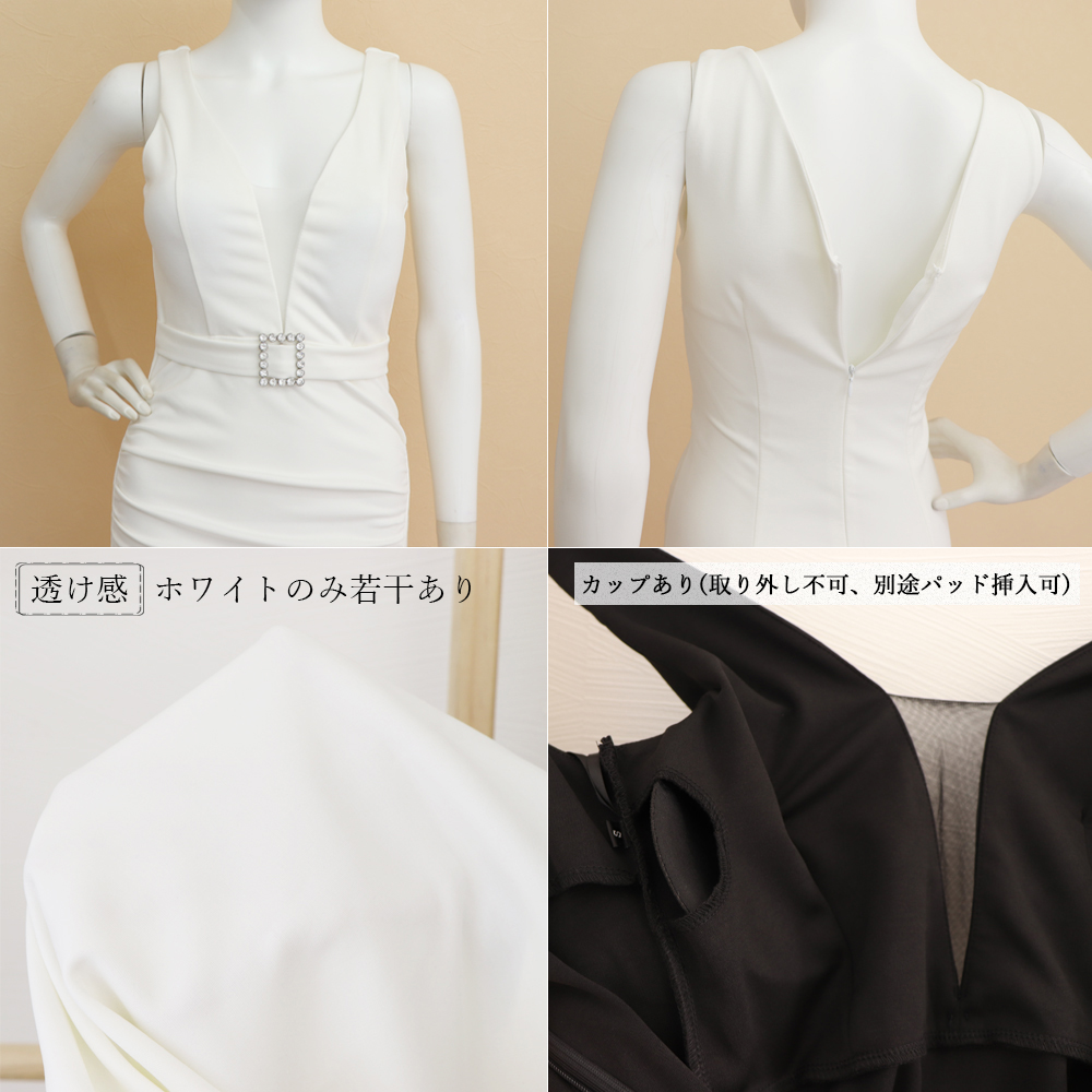 カラー:ブラック/ホワイト サイズ:S/M [S]総丈:約144cm 身幅:約36cm 胸囲:約72-86cm ウエスト:約58-72cm ヒップ:約76-86cm [M]総丈:約146cm 身幅:約38cm 胸囲:約76-90cm ウエスト:約66-80cm ヒップ:約86-96cm カップ:あり、取り外し不可、別途パッド挿入可 裏地:なし 伸縮性:若干あり 透け感:ホワイトのみ若干あり