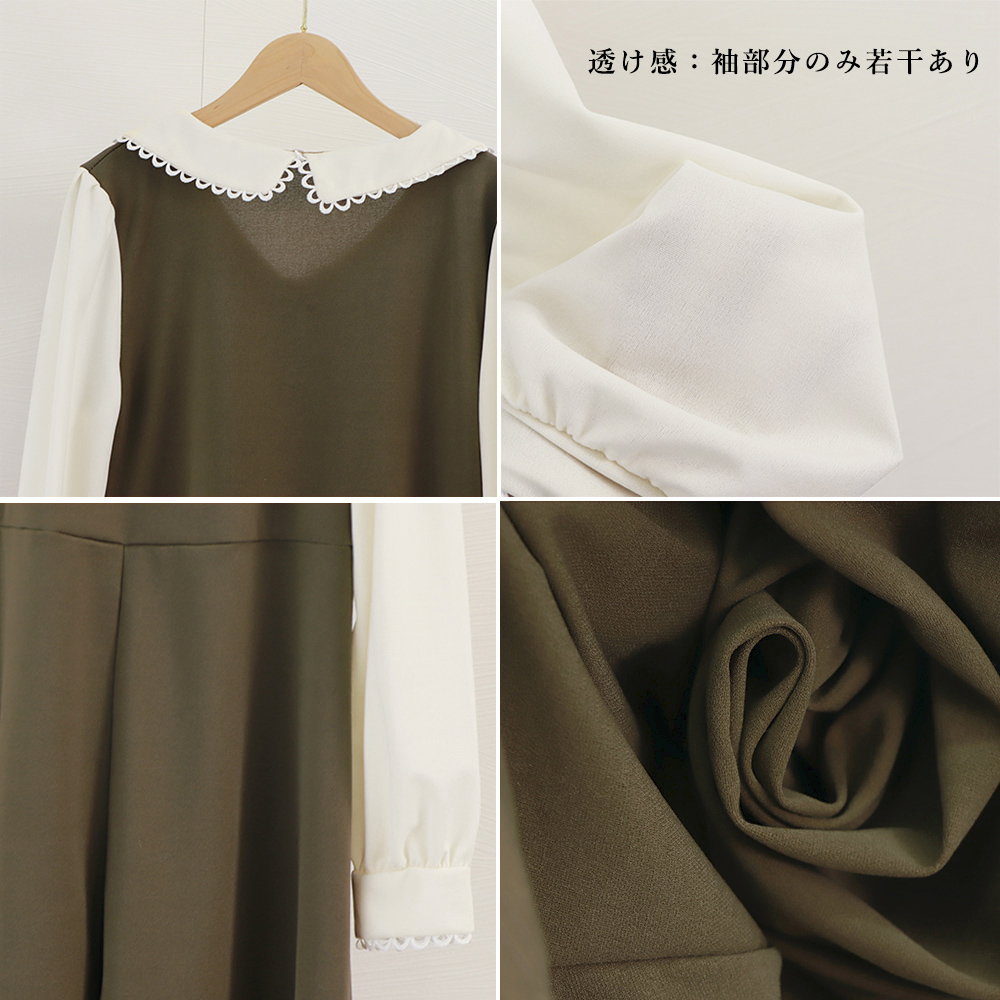 襟付きの上品なスタイルで、異素材の切り替えがおしゃれ見えを演出します。