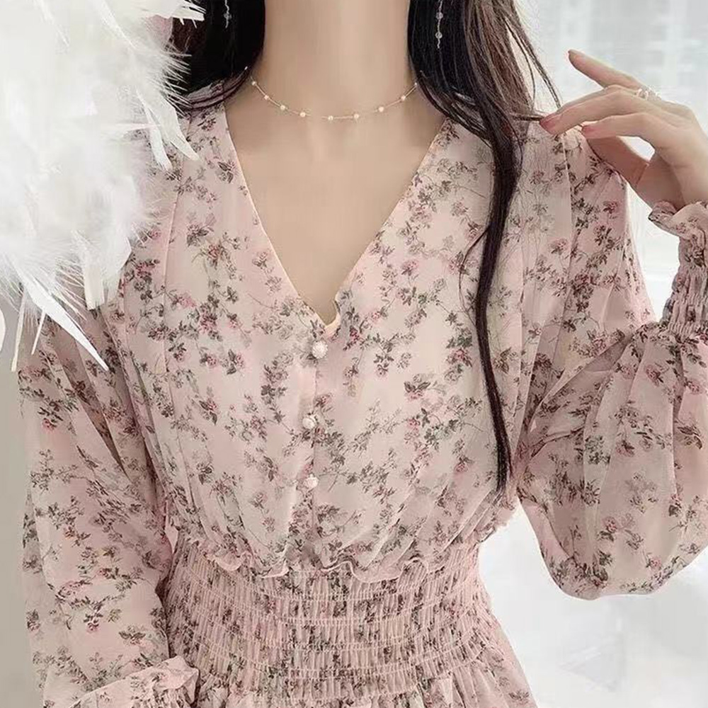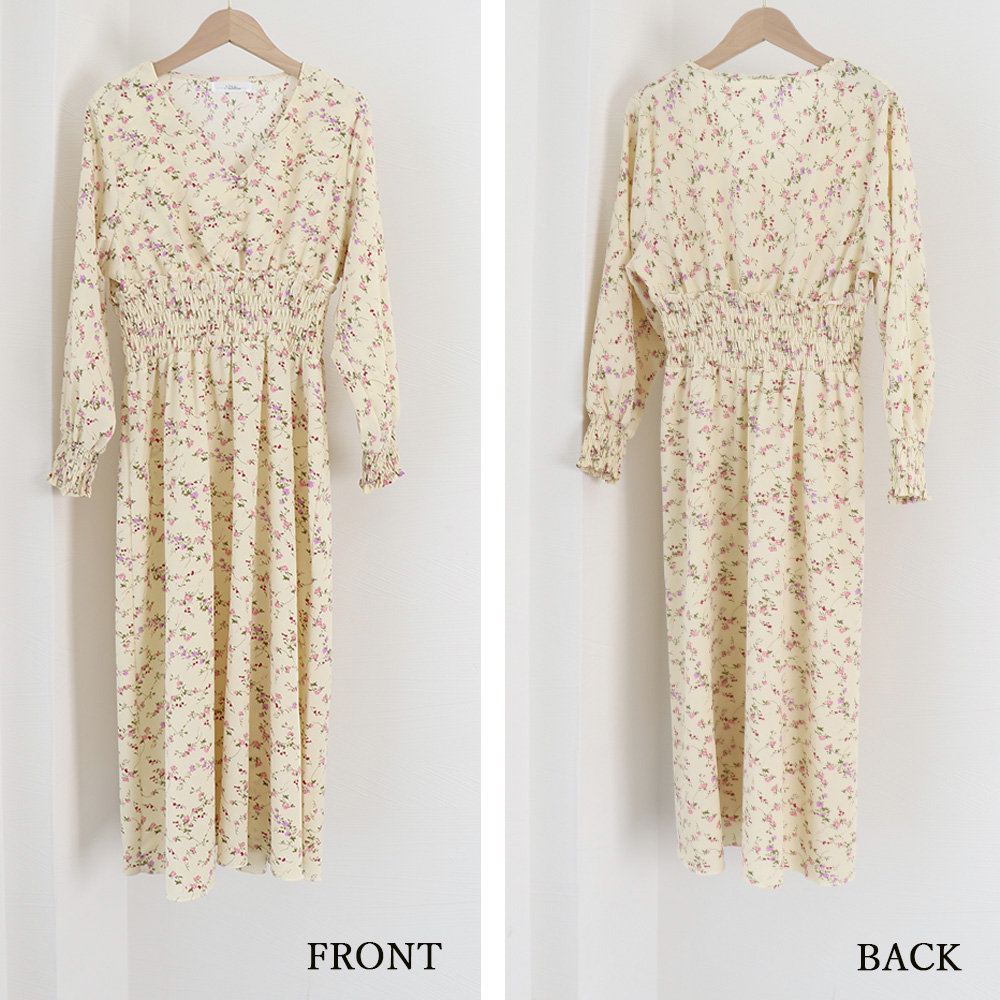 フェミニンな花柄とフリル袖がエレガントな印象を演出