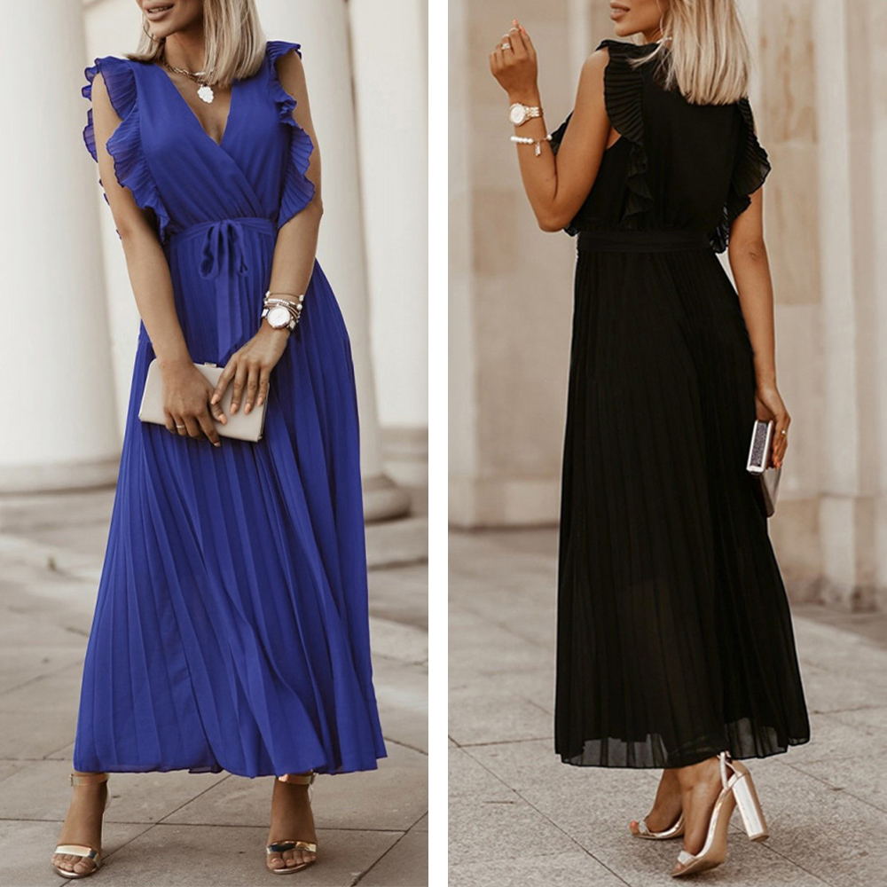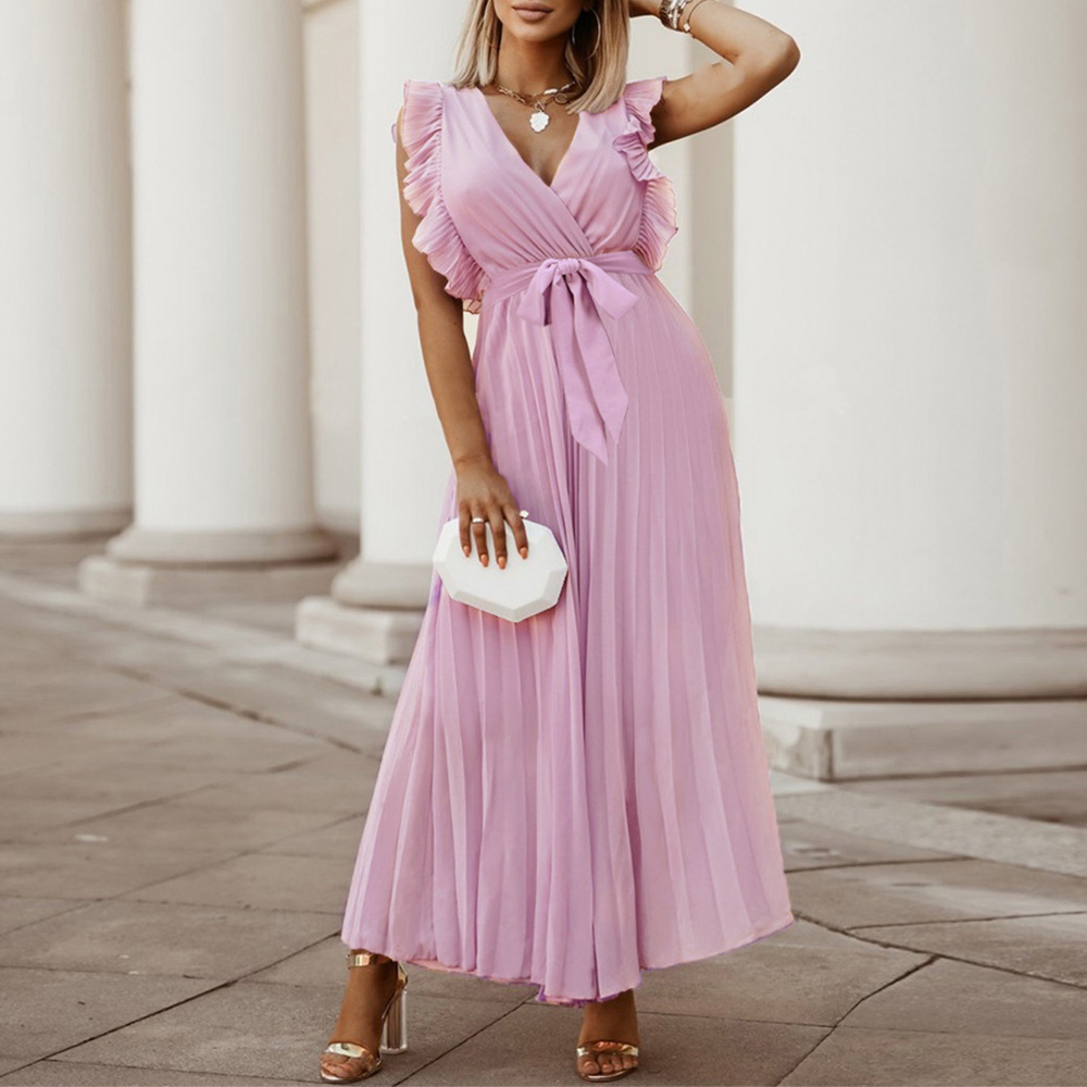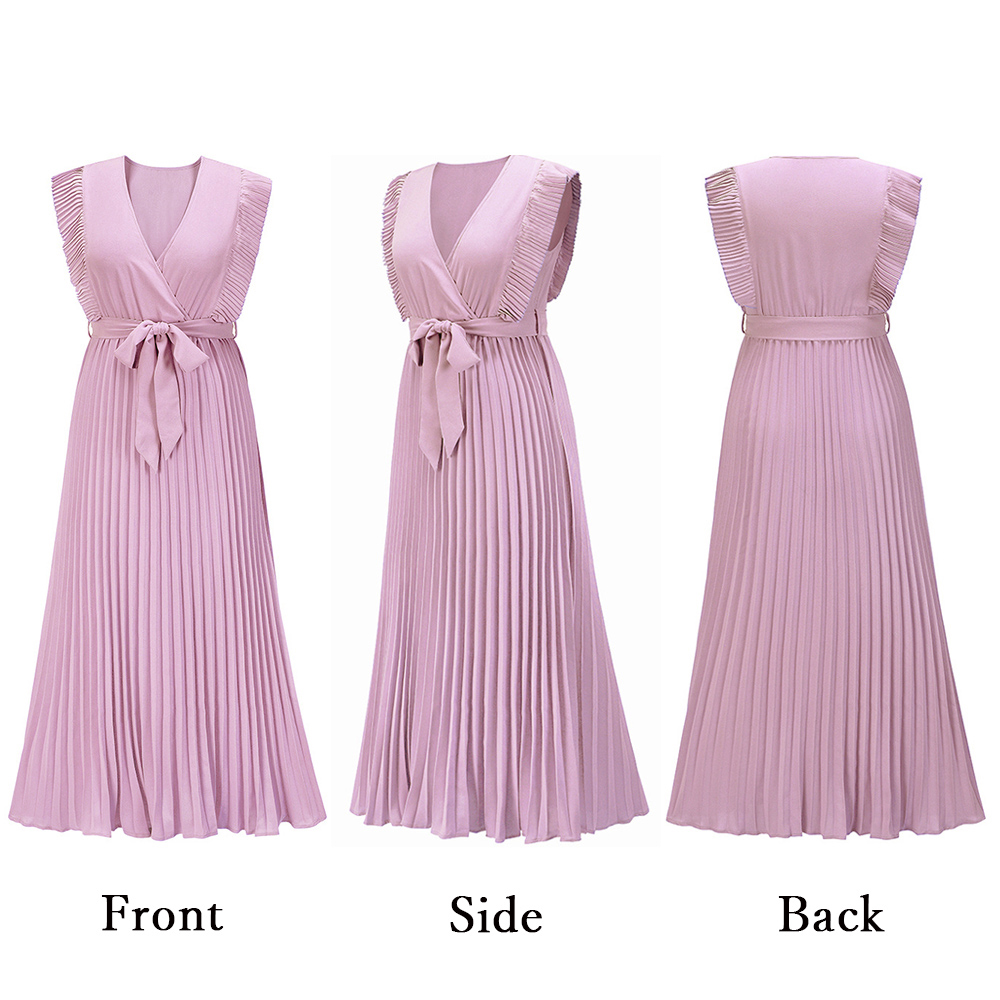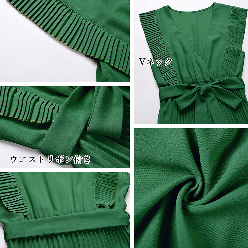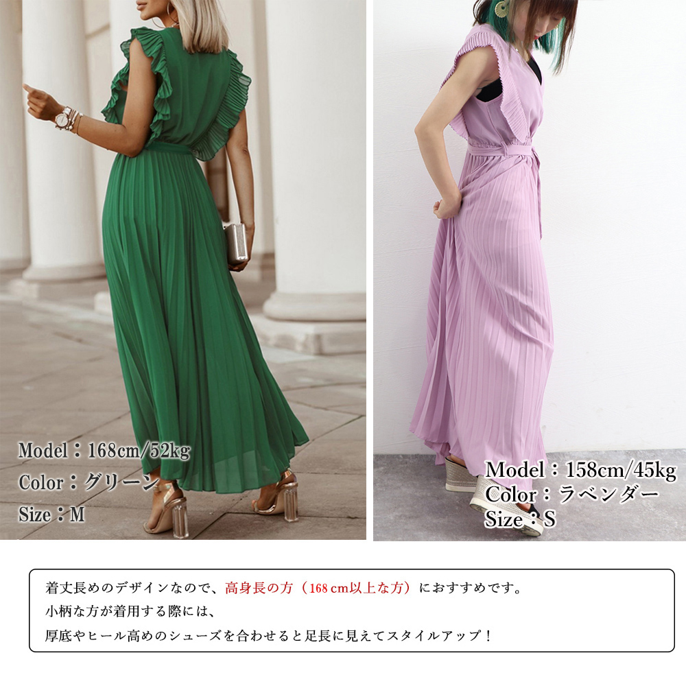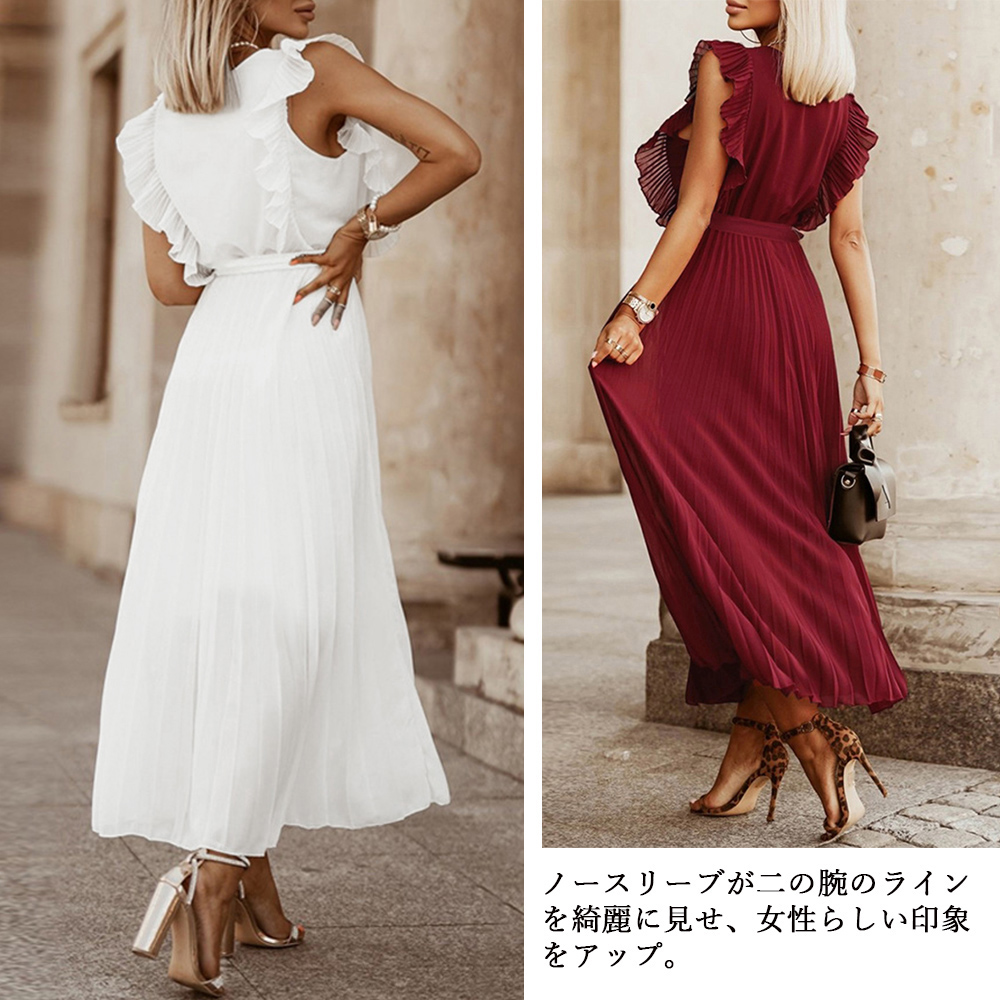 上品で優雅な印象を与えるプリーツロングワンピース。
