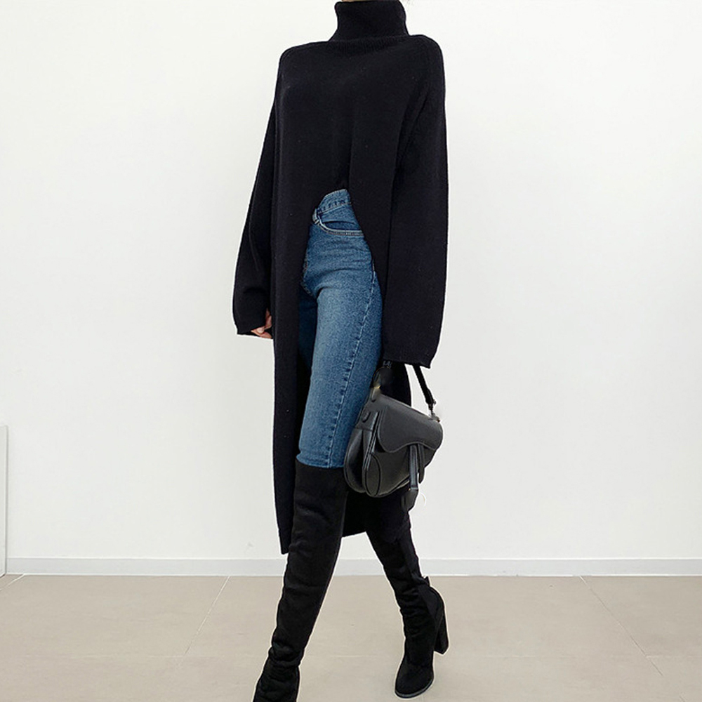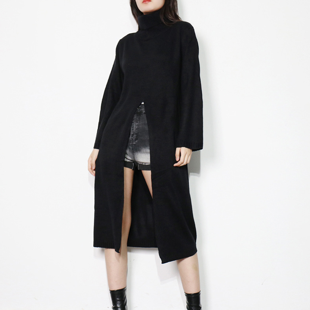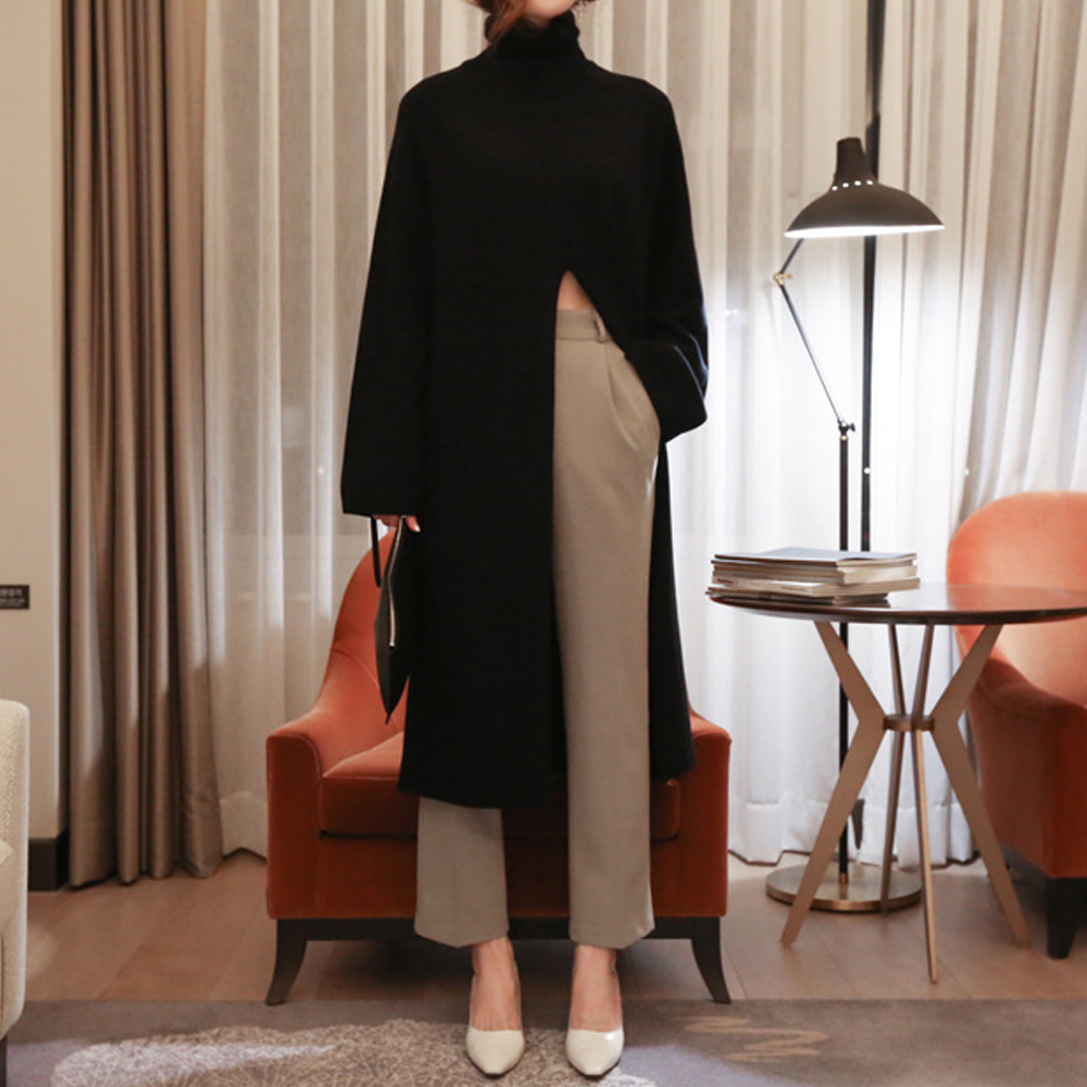 ざっくりと開いたスリットでおしゃれなちら見せが楽しめるニット素材のロングワンピース。