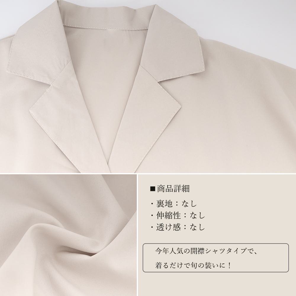 今年人気の開襟シャツタイプで、着るだけで旬の装いに。