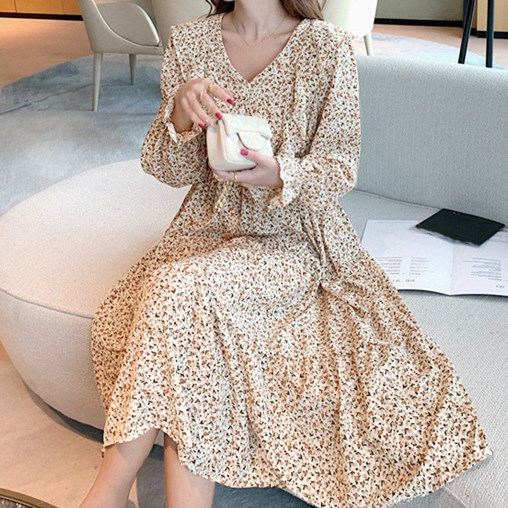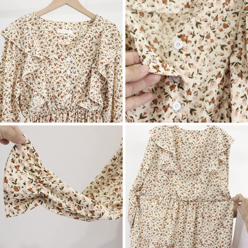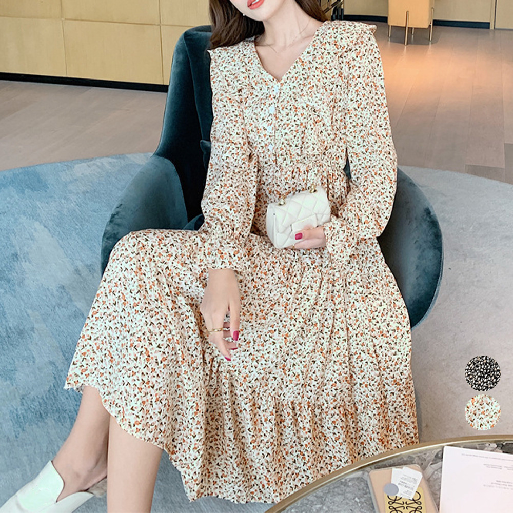 上品な小花柄が美しいロングワンピースとしても楽しめるシャツワンピース。