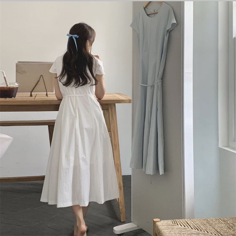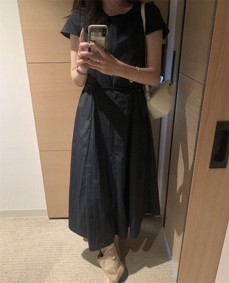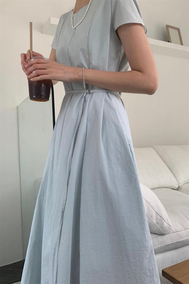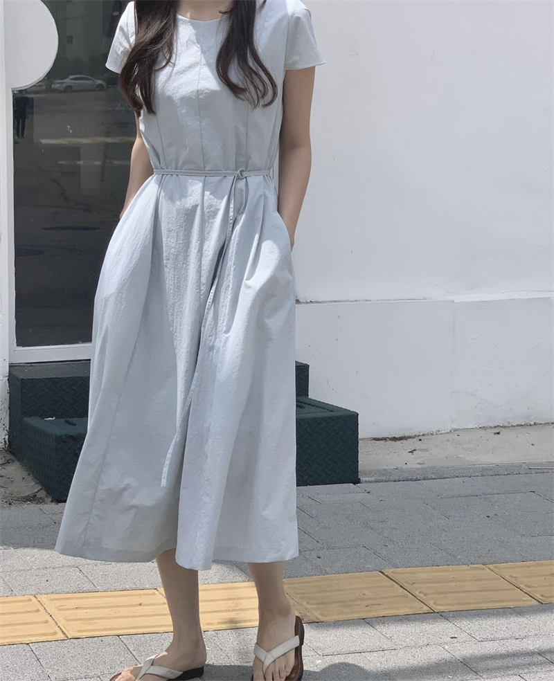 柔らかなリネン風素材とウエストリボンで女性らしさを演出。