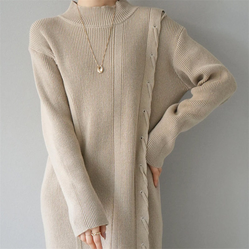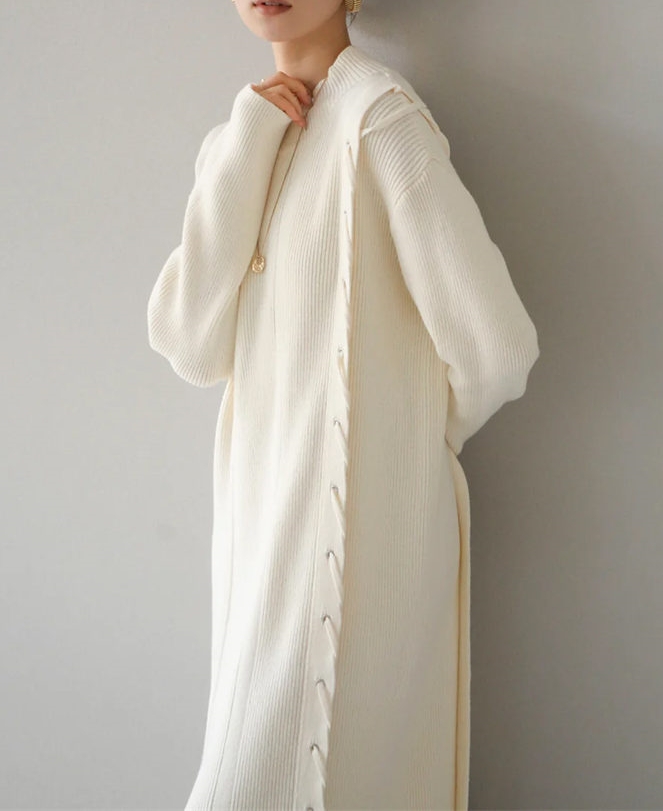柔らかなニット素材を使用した快適な着心地のロングワンピースです。