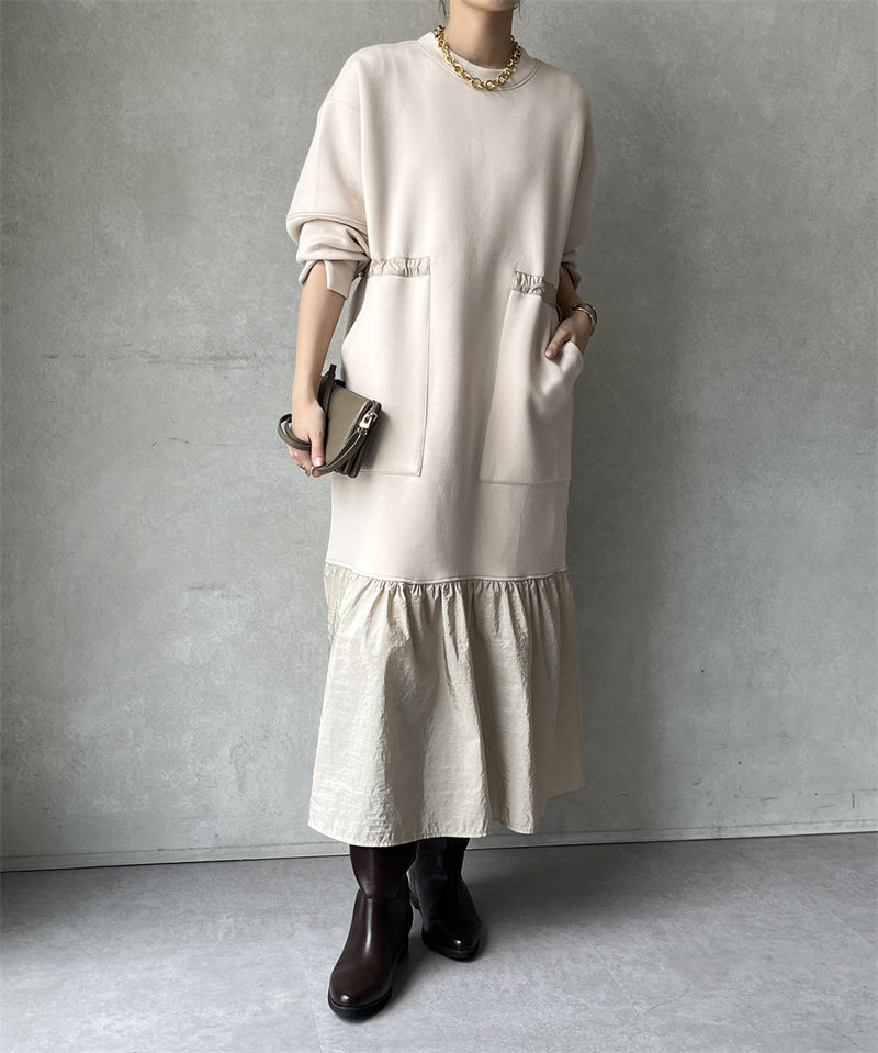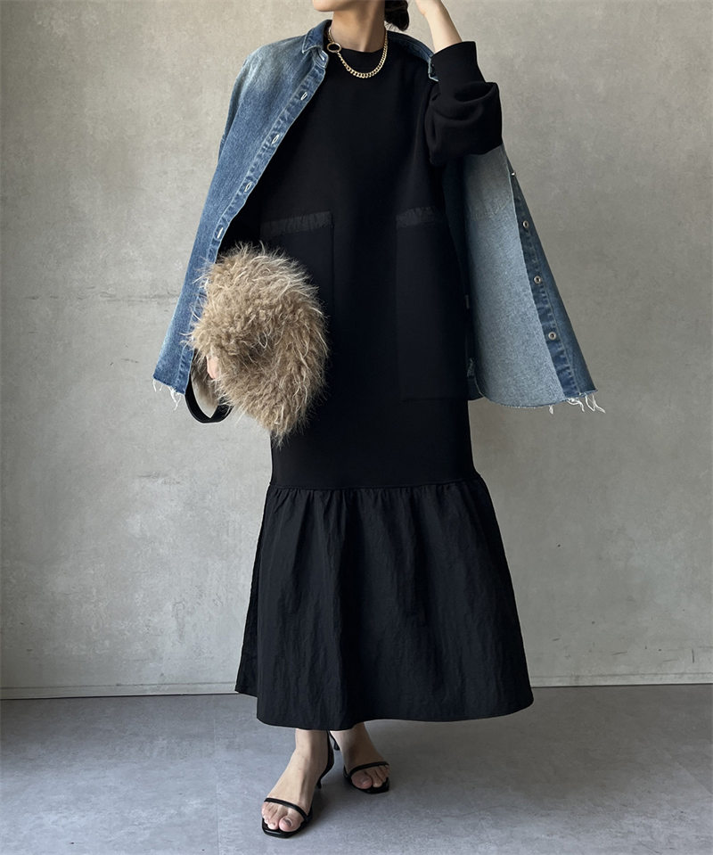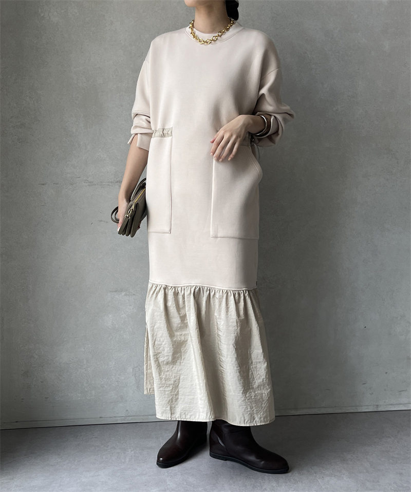 今季注目の裾フレアデザインが美しいロングワンピース。