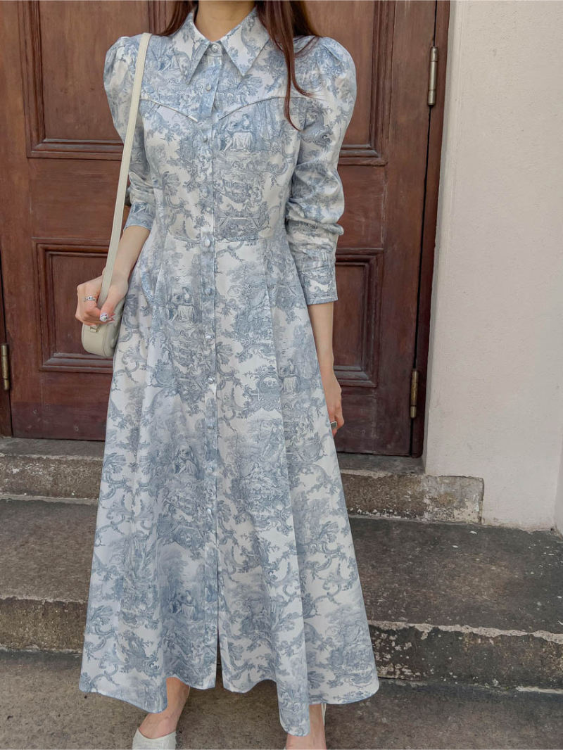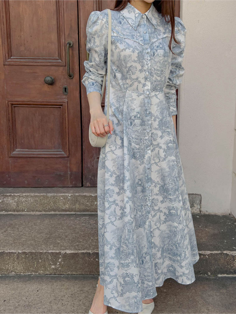 今季注目の韓国風デザインが魅力的なシャツタイプのロングワンピース。