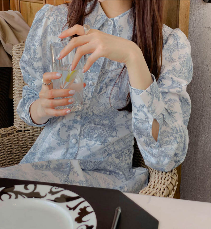 上品な花柄プリントと襟付きデザインで大人の女性らしさを演出します。